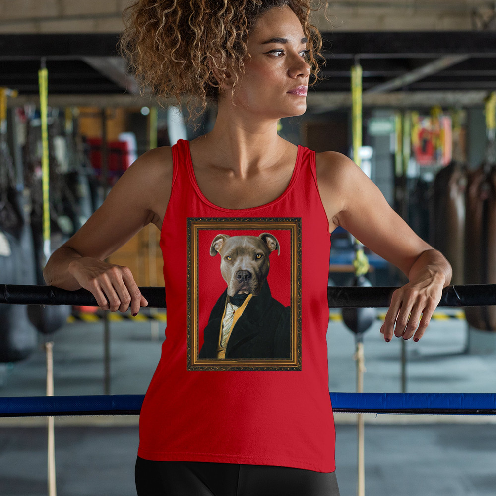 Unique pit bull portrait in 18th-century attire, blending humor and elegance for pet lovers and history enthusiasts. Perfect for home or office decor.