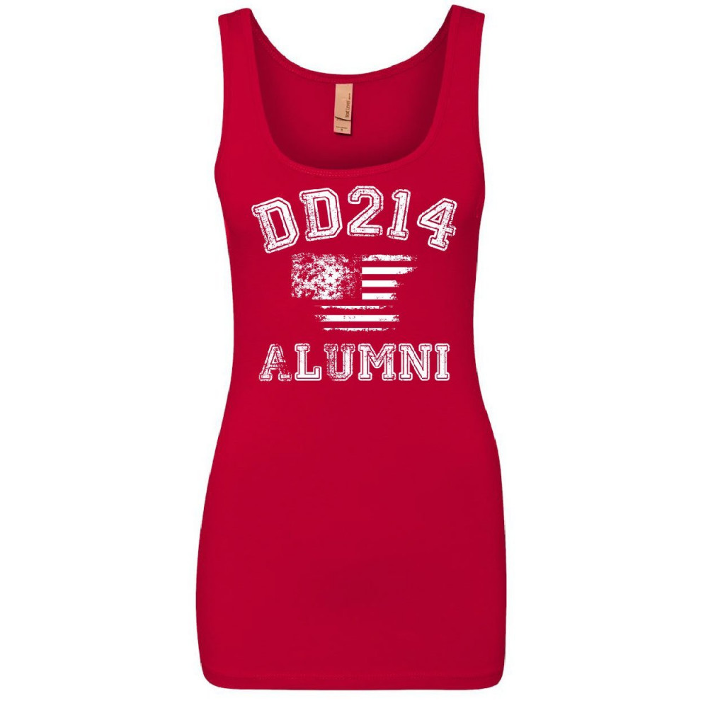 DD214 ALUMNI distressed american flag women's tank top military veteran top red