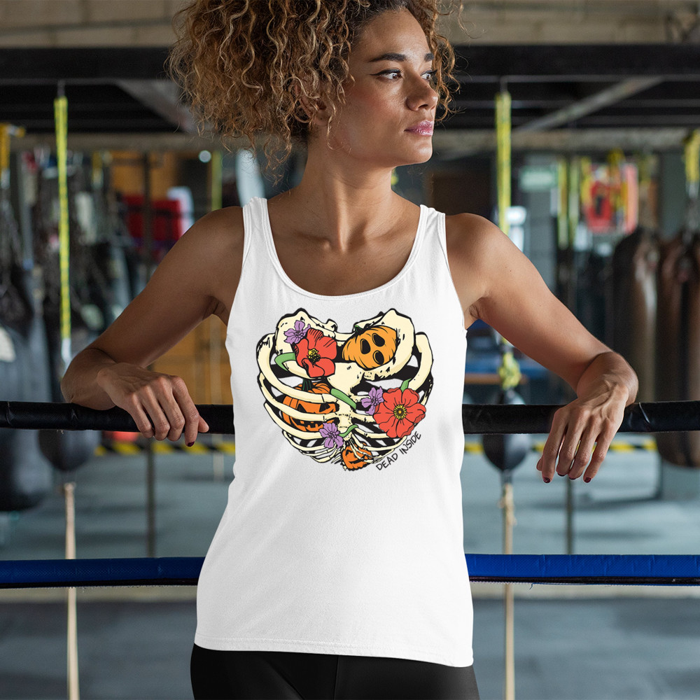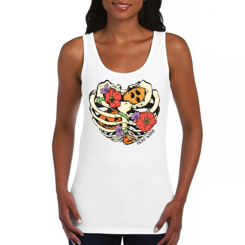 Celebrate Halloween with a quirky and cute design featuring a skeleton ribcage filled with pumpkins and flowers. Perfect for spooky season lovers!