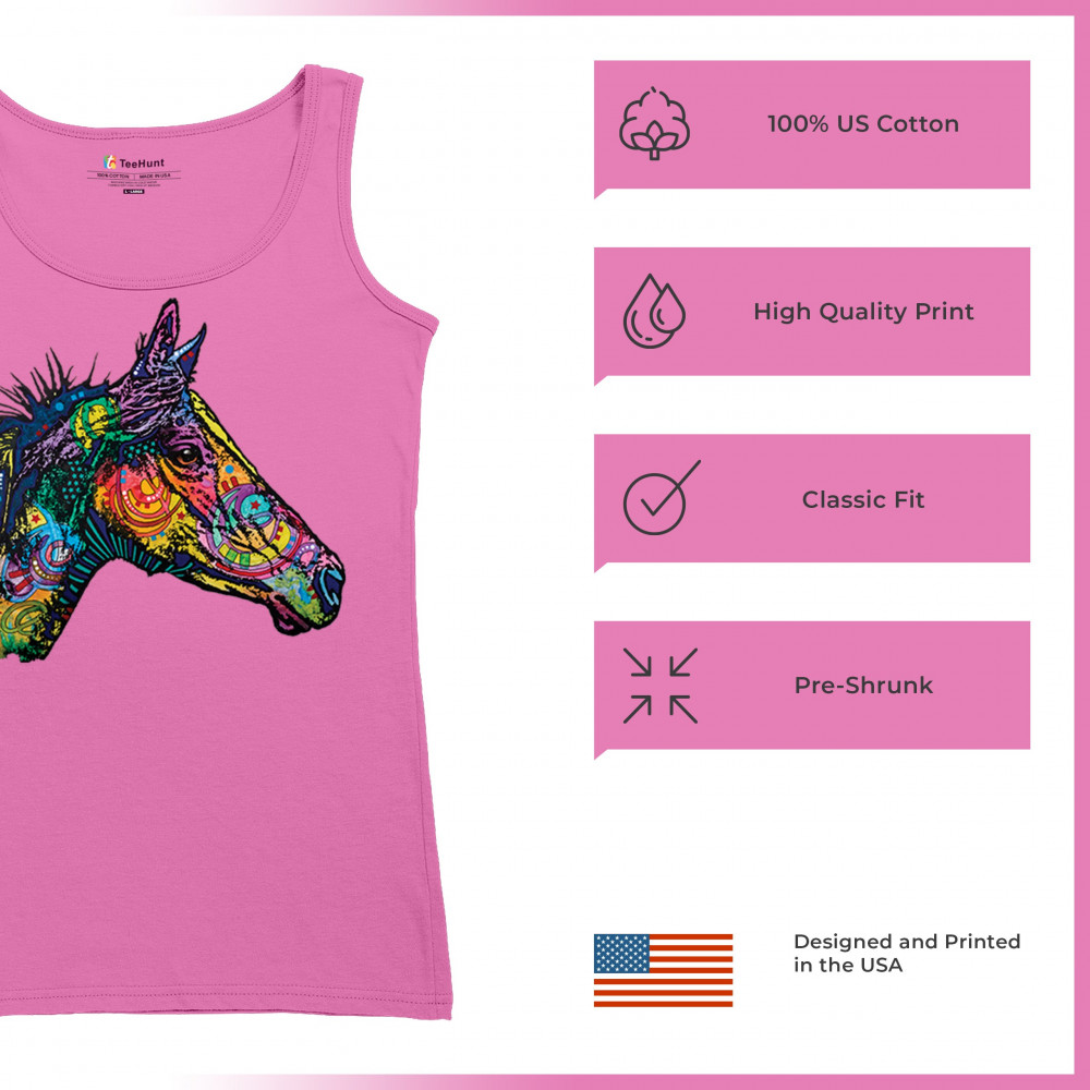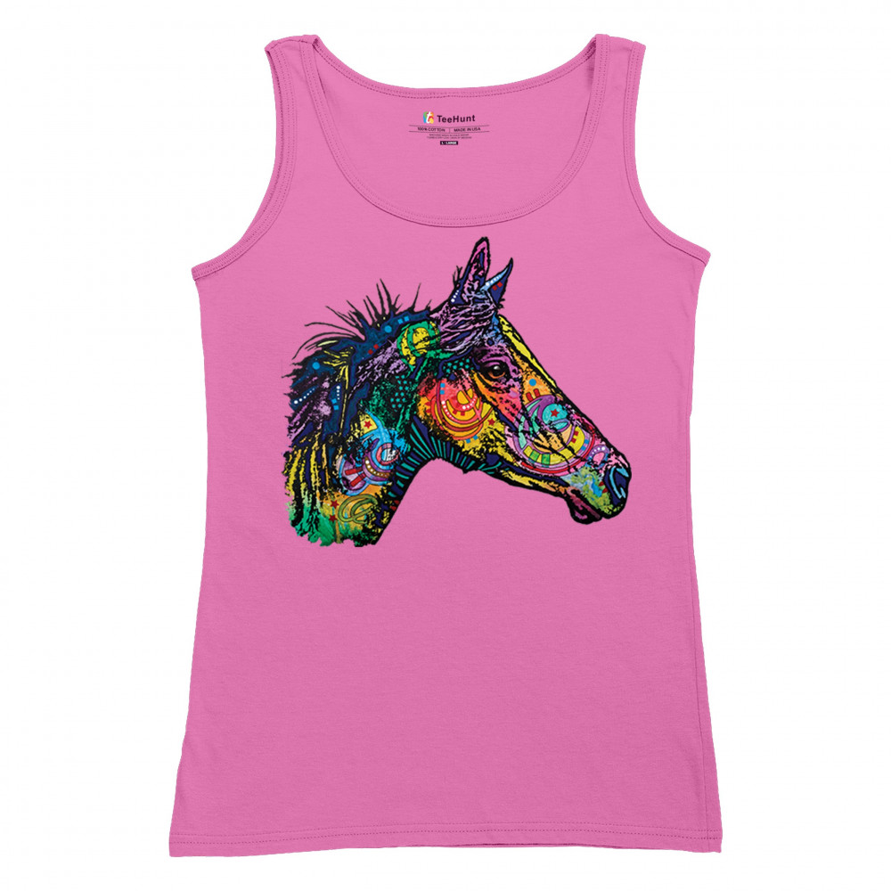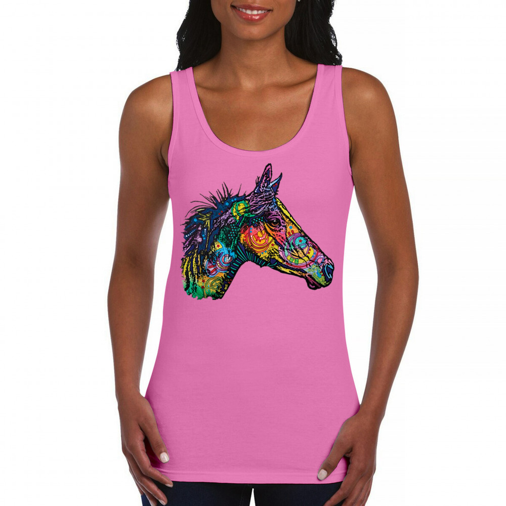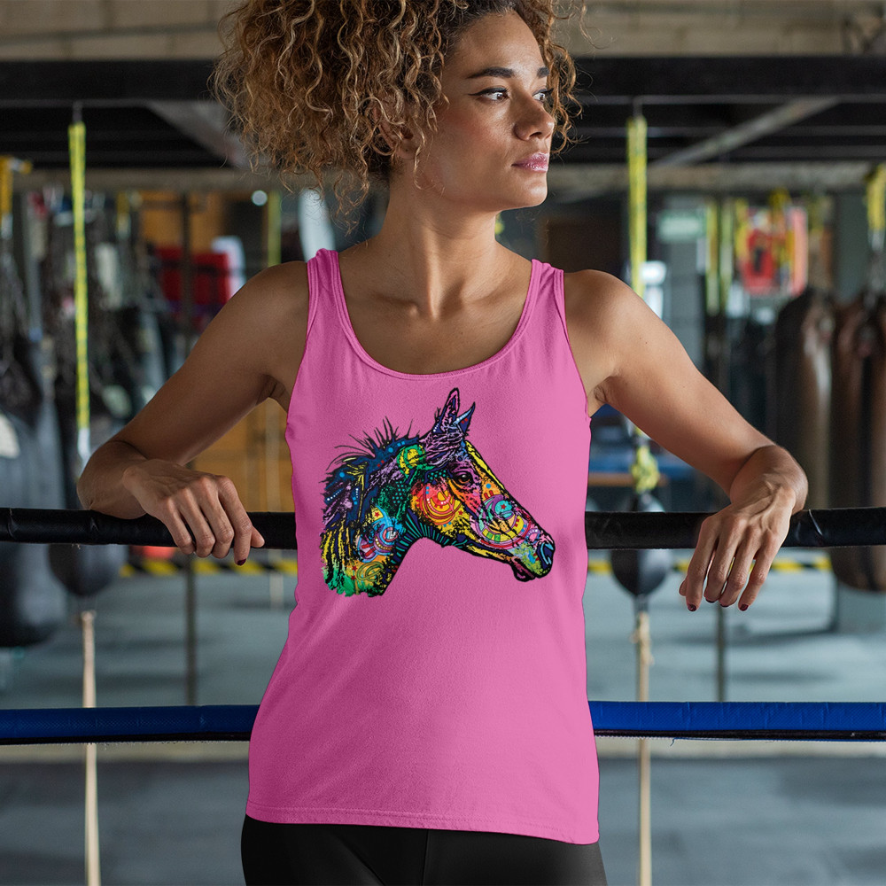 DEAN RUSSO COLORFUL HORSE women's tank top neon mosaic wild mustang animal pink
