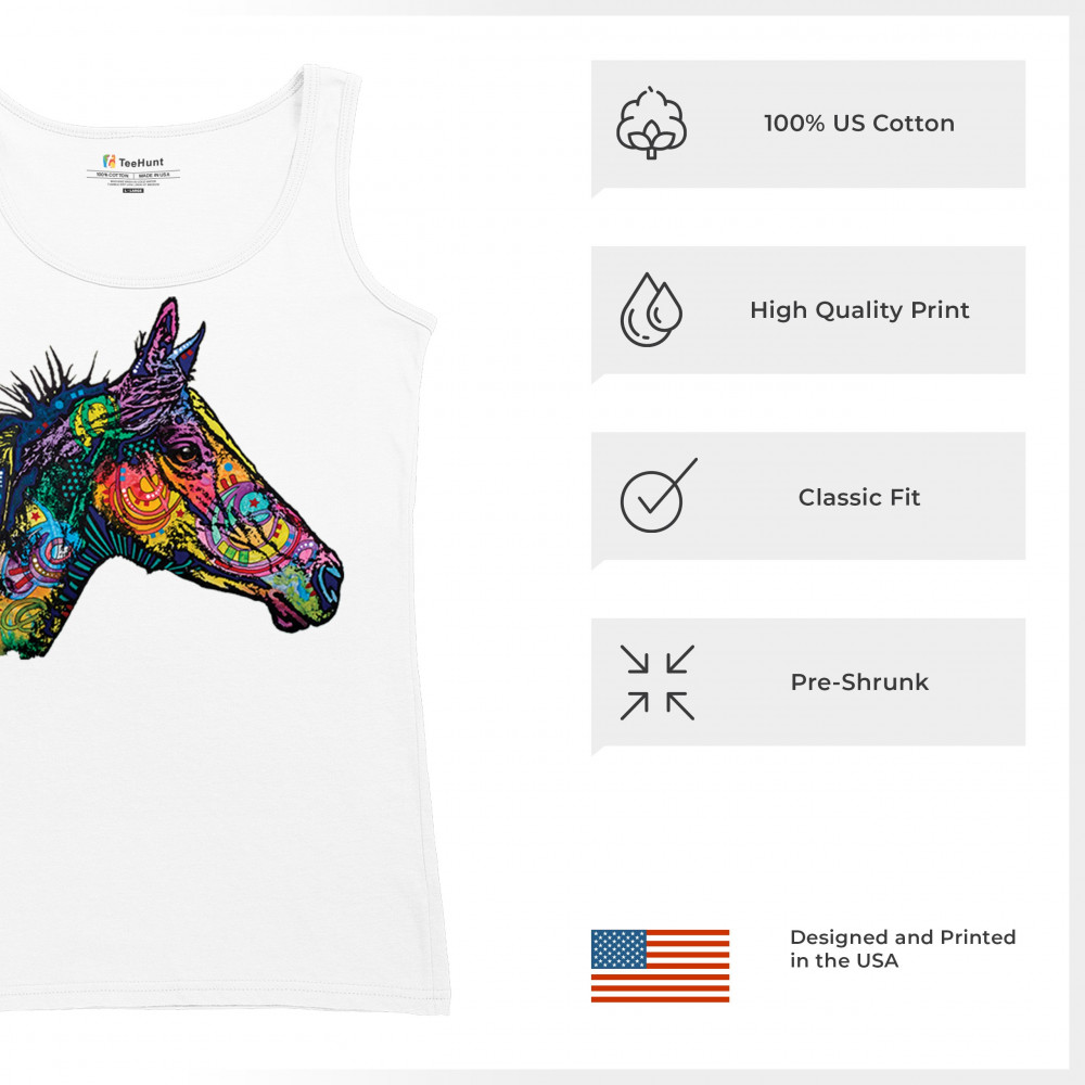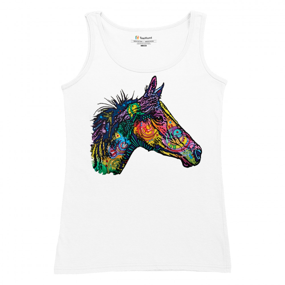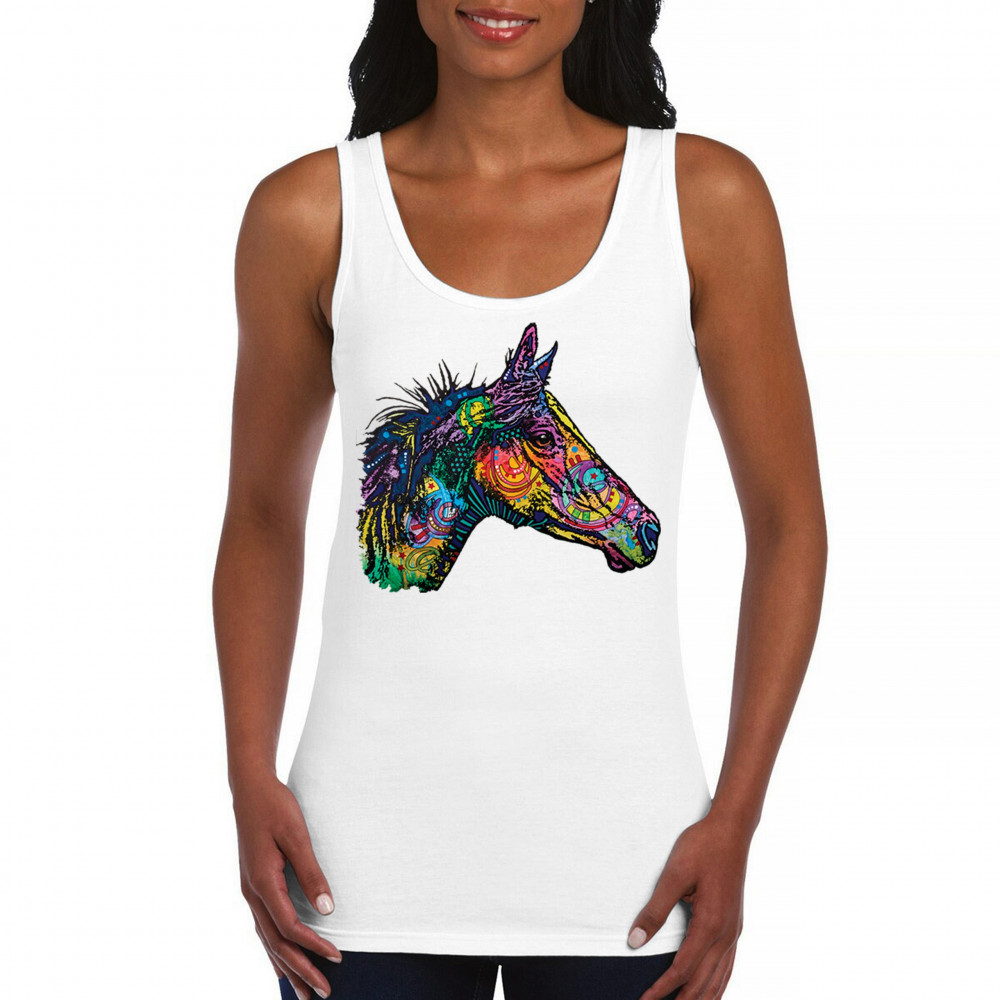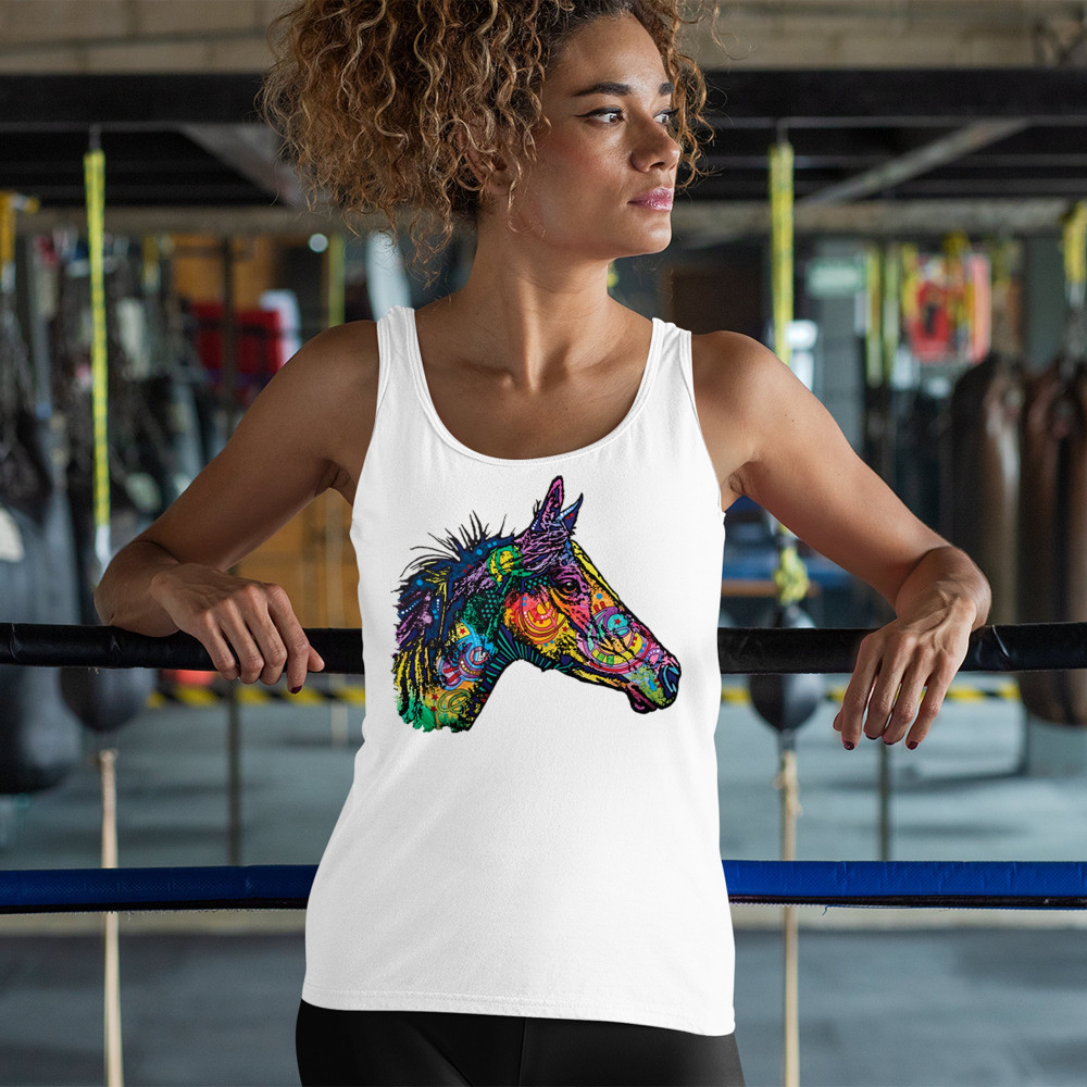 DEAN RUSSO COLORFUL HORSE women's tank top neon mosaic wild mustang animal white