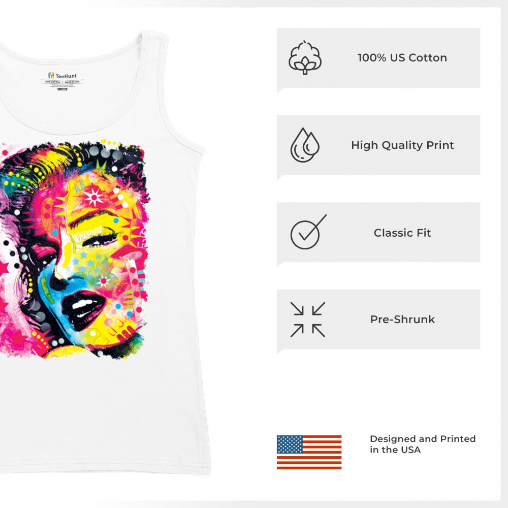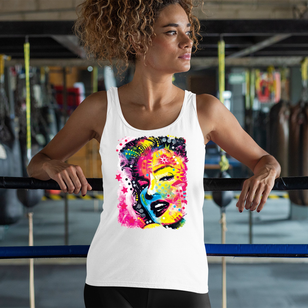 DEAN RUSSO COLORFUL MARILYN women's tank top neon hot symbol starlet white