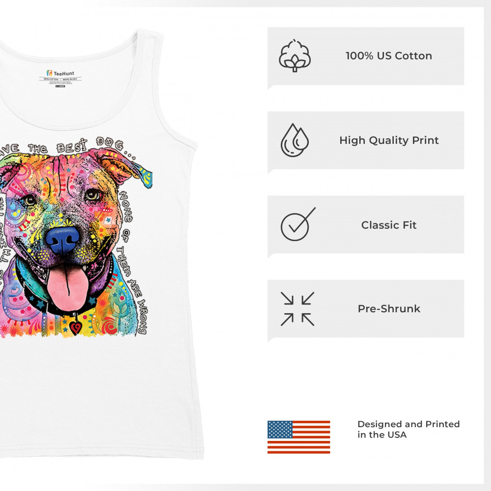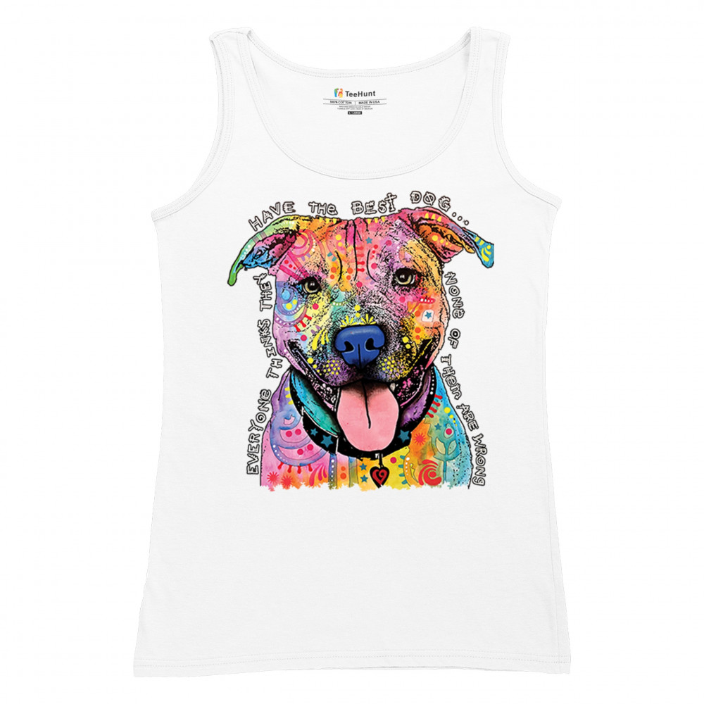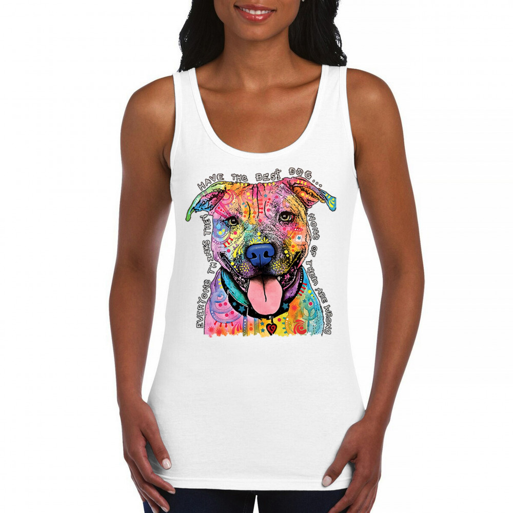 DEAN RUSSO COLORFUL PIT BULL women's tank top everyone has best dogs white
