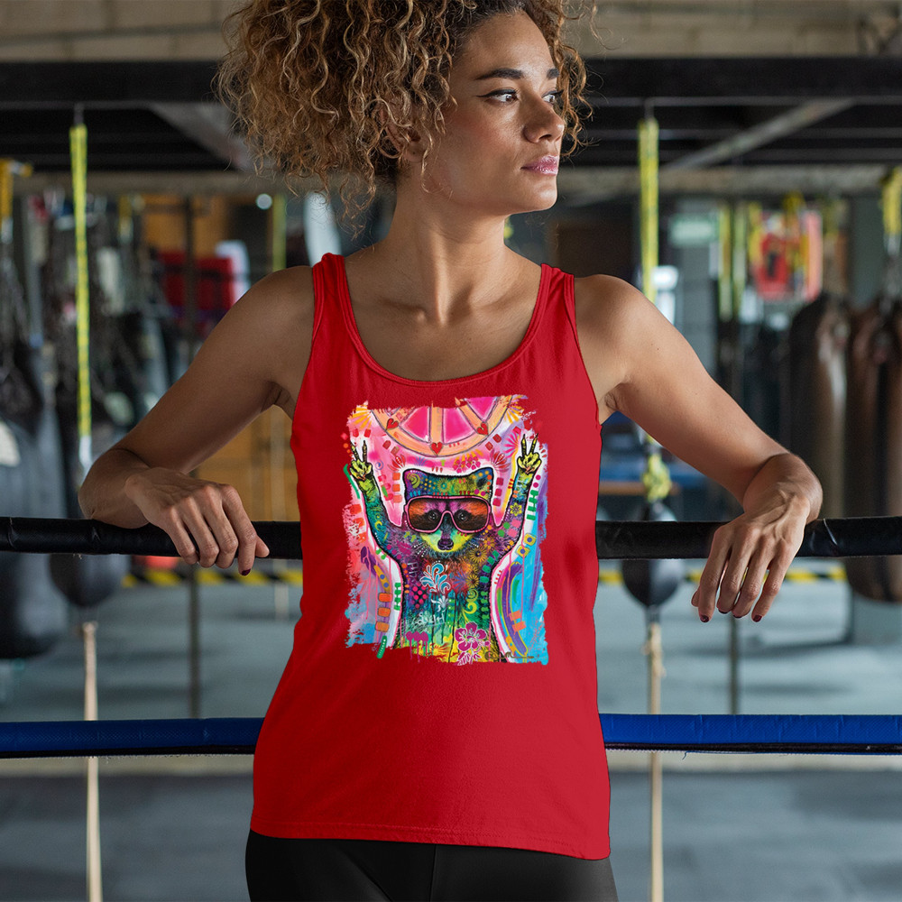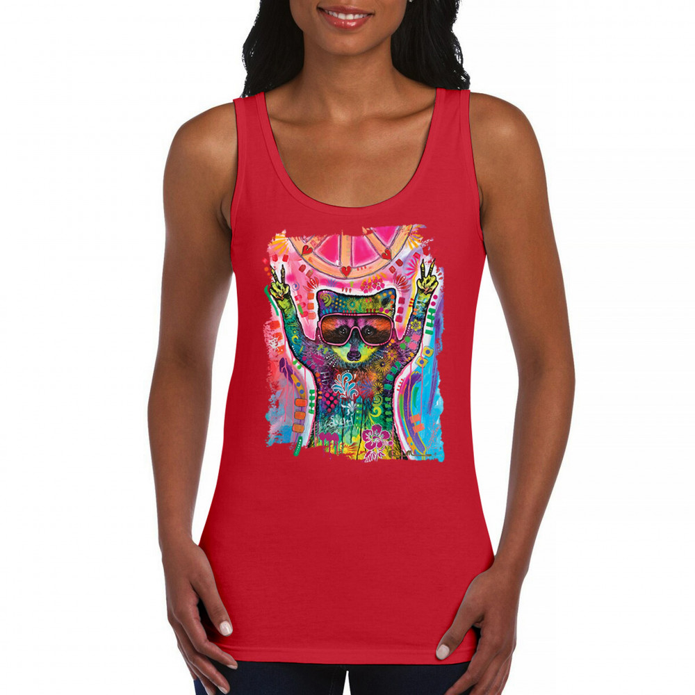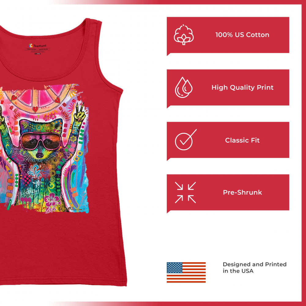 DEAN RUSSO COSMIC TRASH PANDA women's tank top funny weird hippie red
