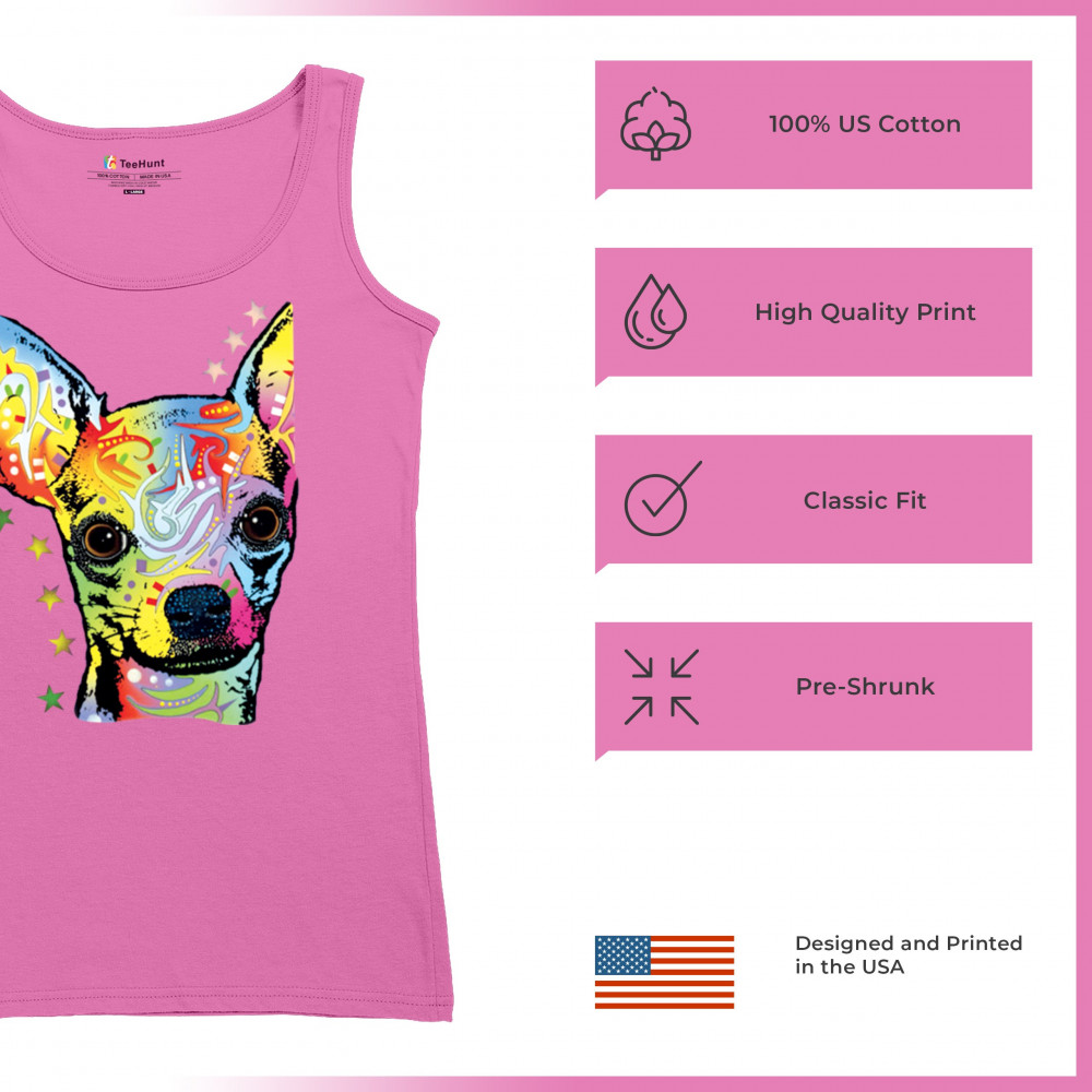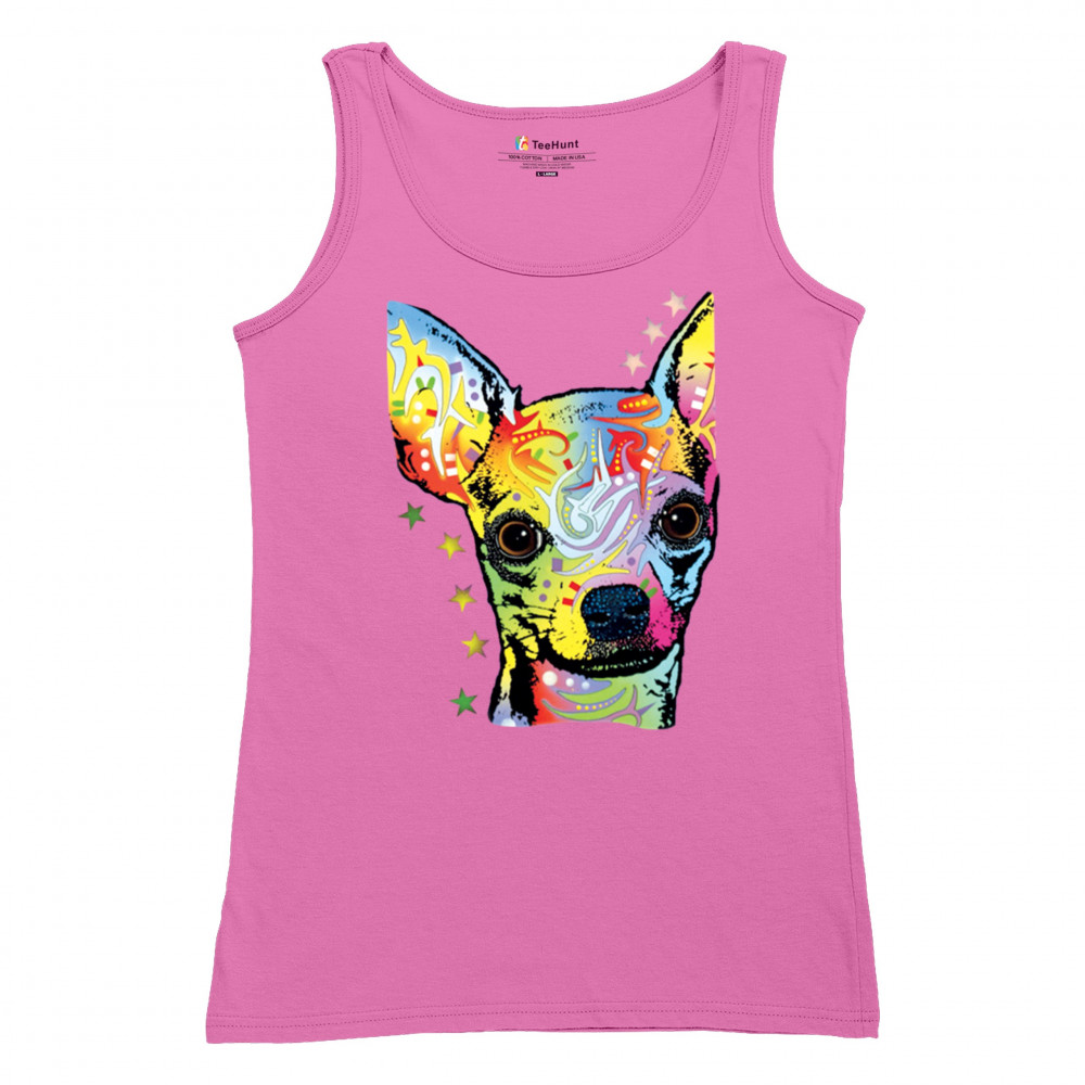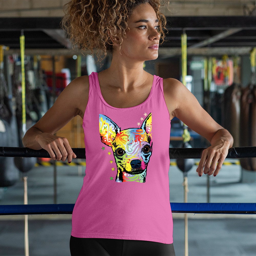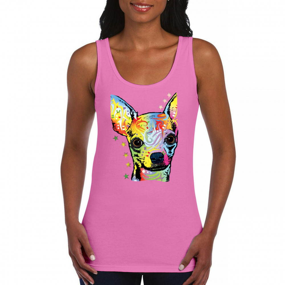 DEAN RUSSO CUTE CHIHUAHUA women's tank top neon colorful small dog pet pink