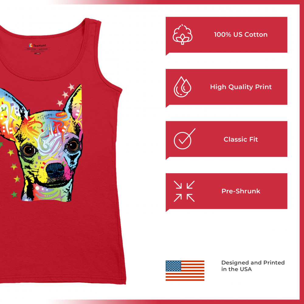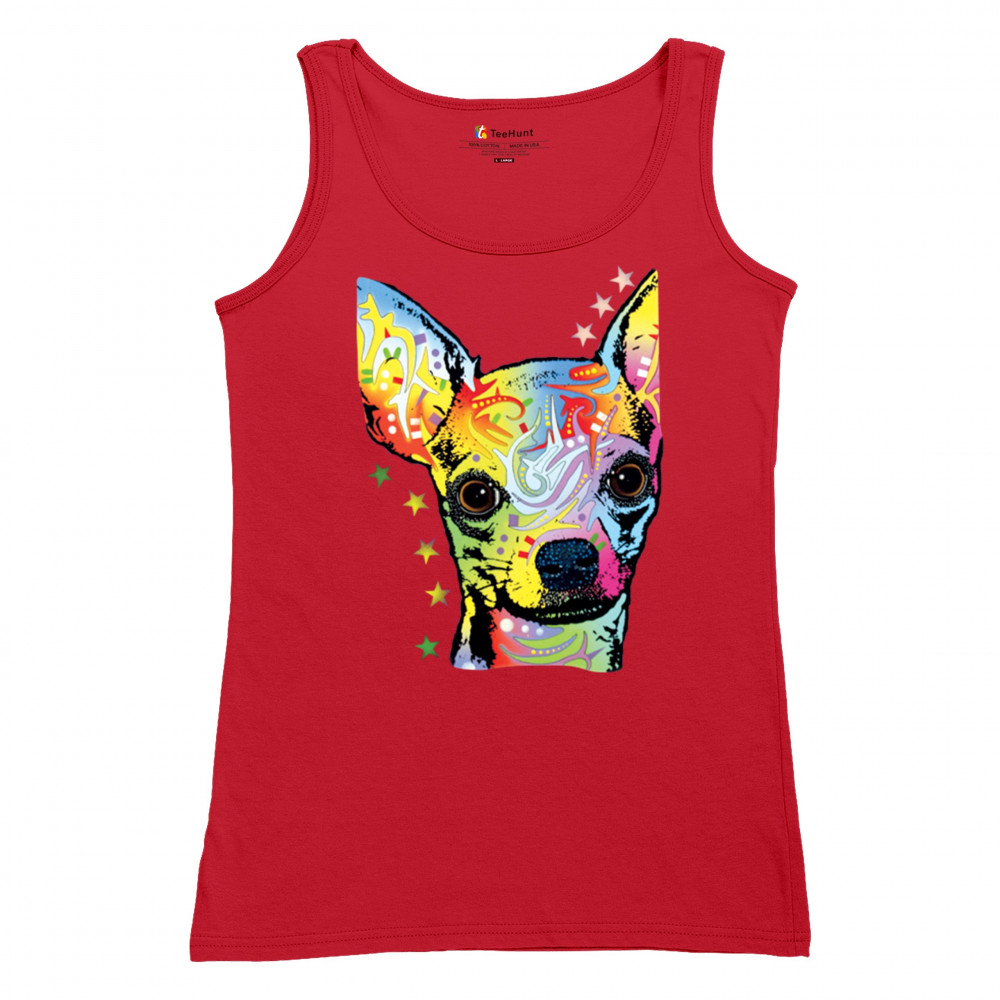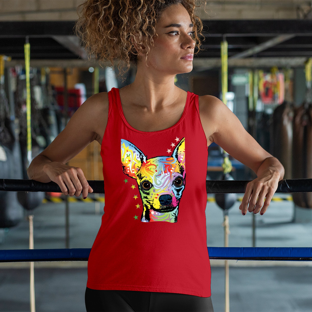 DEAN RUSSO CUTE CHIHUAHUA women's tank top neon colorful small dog pet red