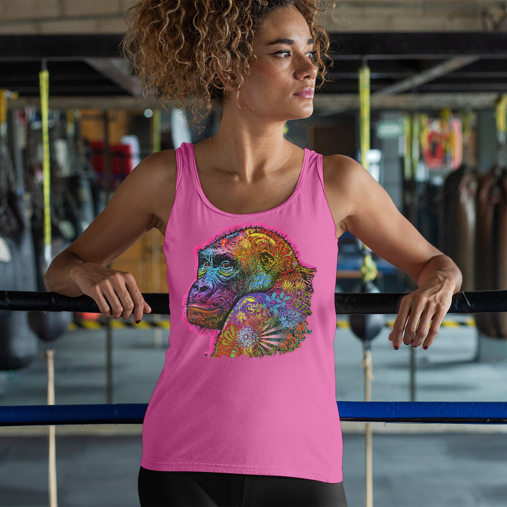 DEAN RUSSO CUTE GORILLA women's tank top colorful neon silverback ape art pink
