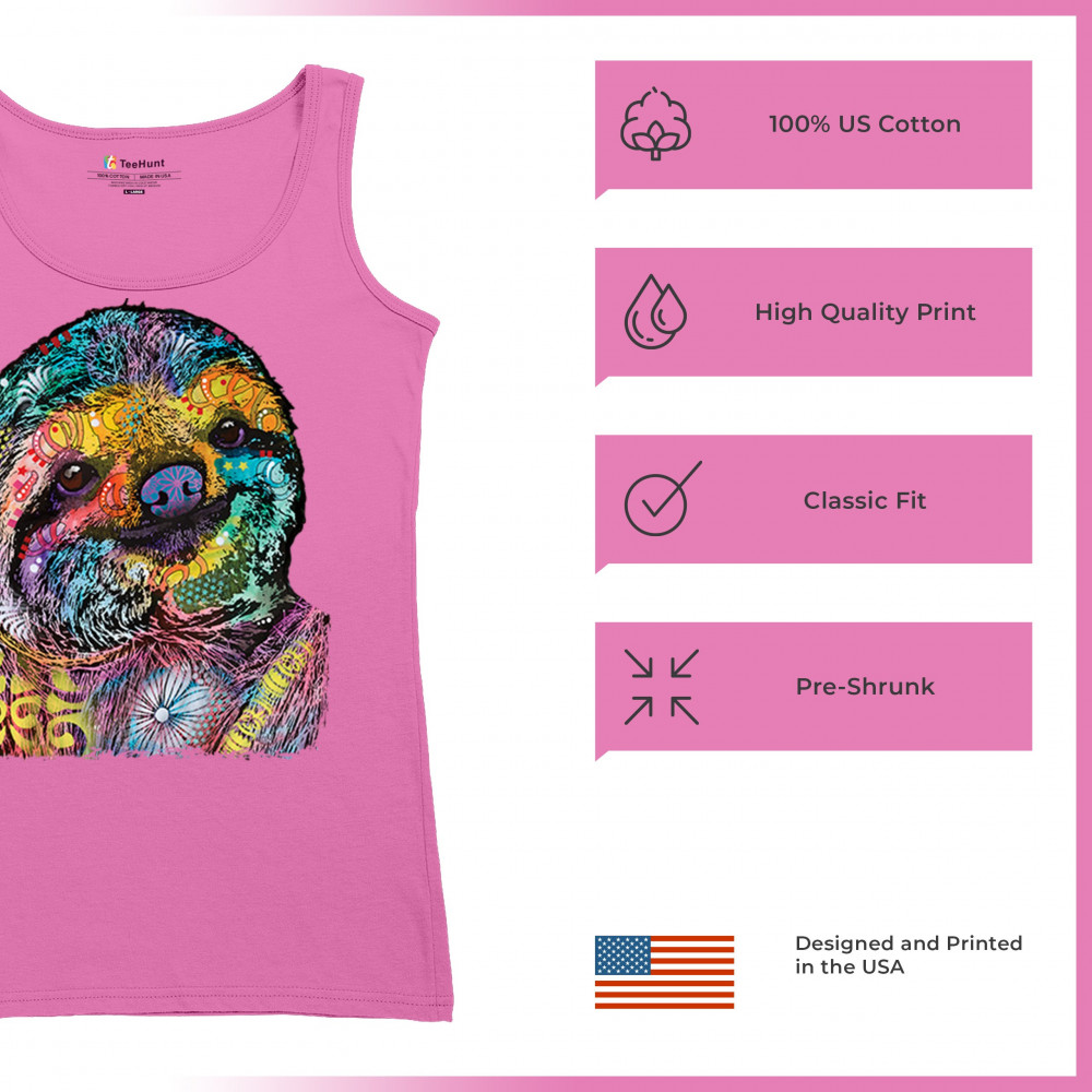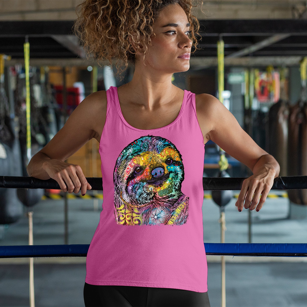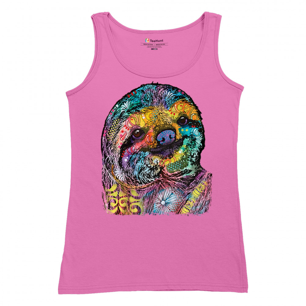 DEAN RUSSO CUTE LAZY SLOTH women's tank top funny wild life colorful pink