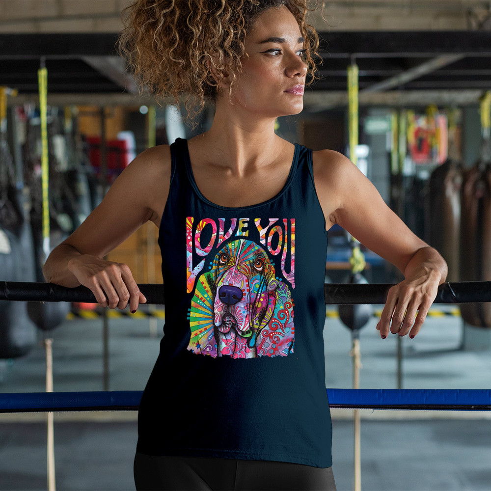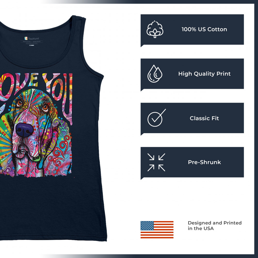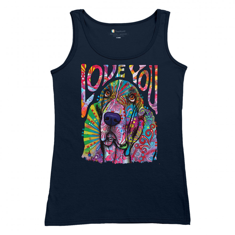 DEAN RUSSO CUTE LOVE YOU BASSET women's tank top colorful dog neon pet navy blue