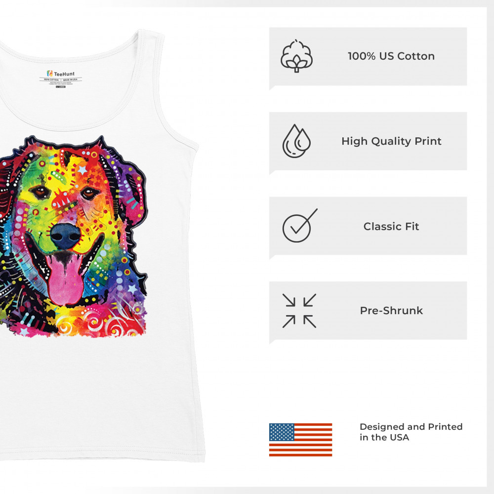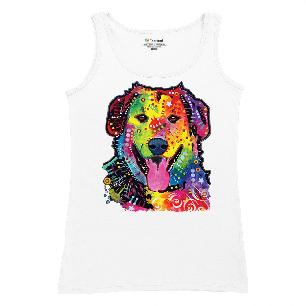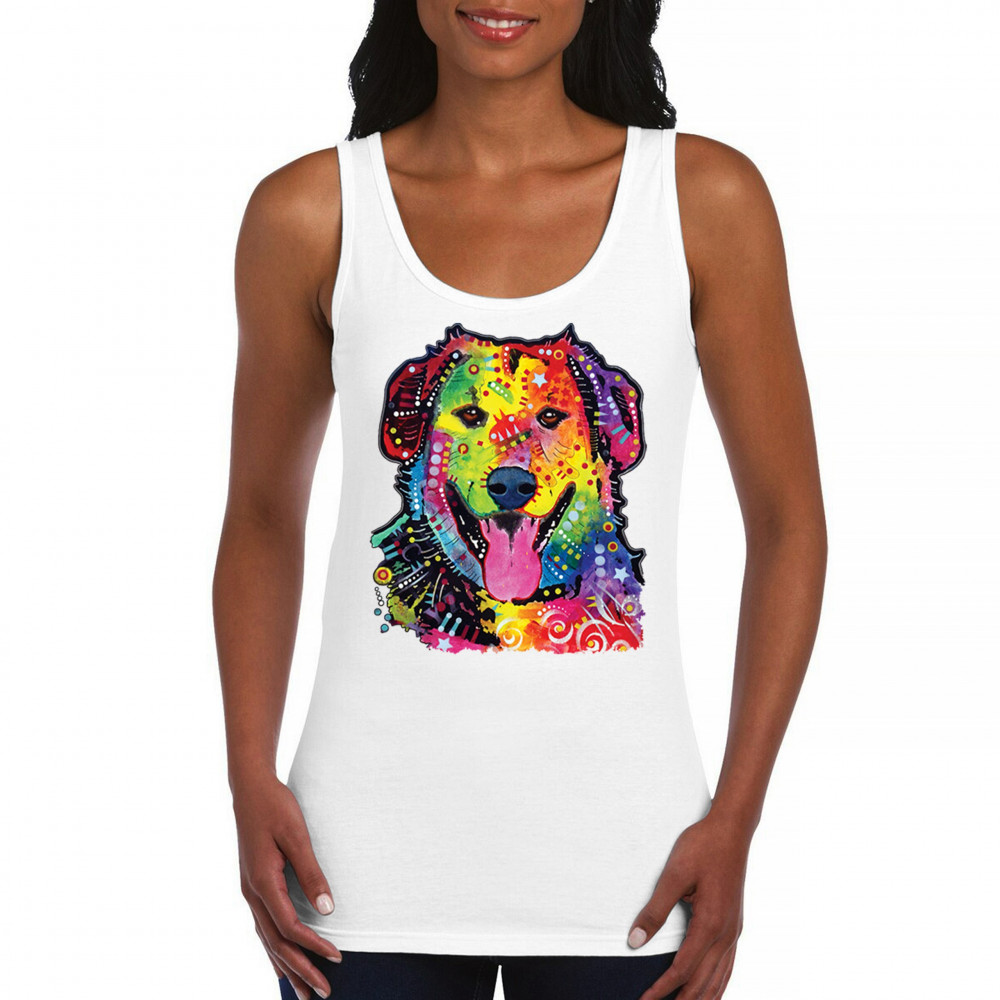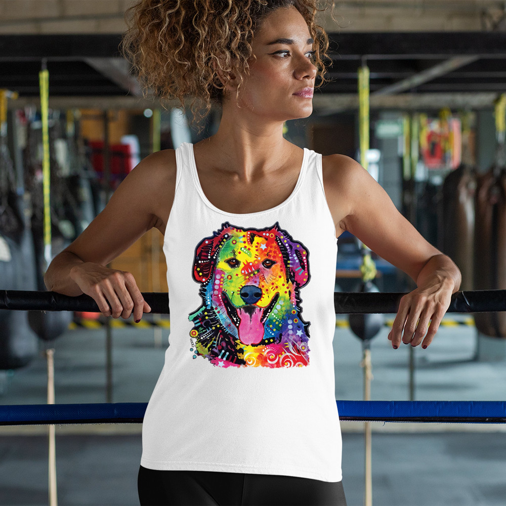 DEAN RUSSO CUTE NEON DOG women's tank top rescue adopt a pet colorful pet white
