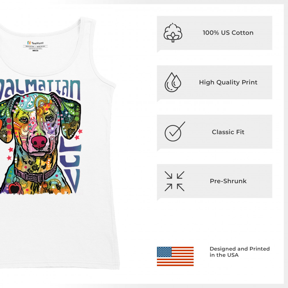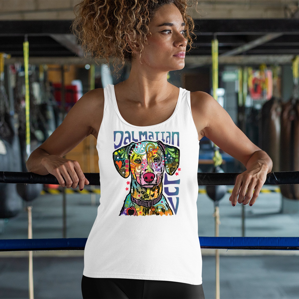 DEAN RUSSO DALMATIAN LUV COLORFUL DOG women's tank top neon puppy lover white