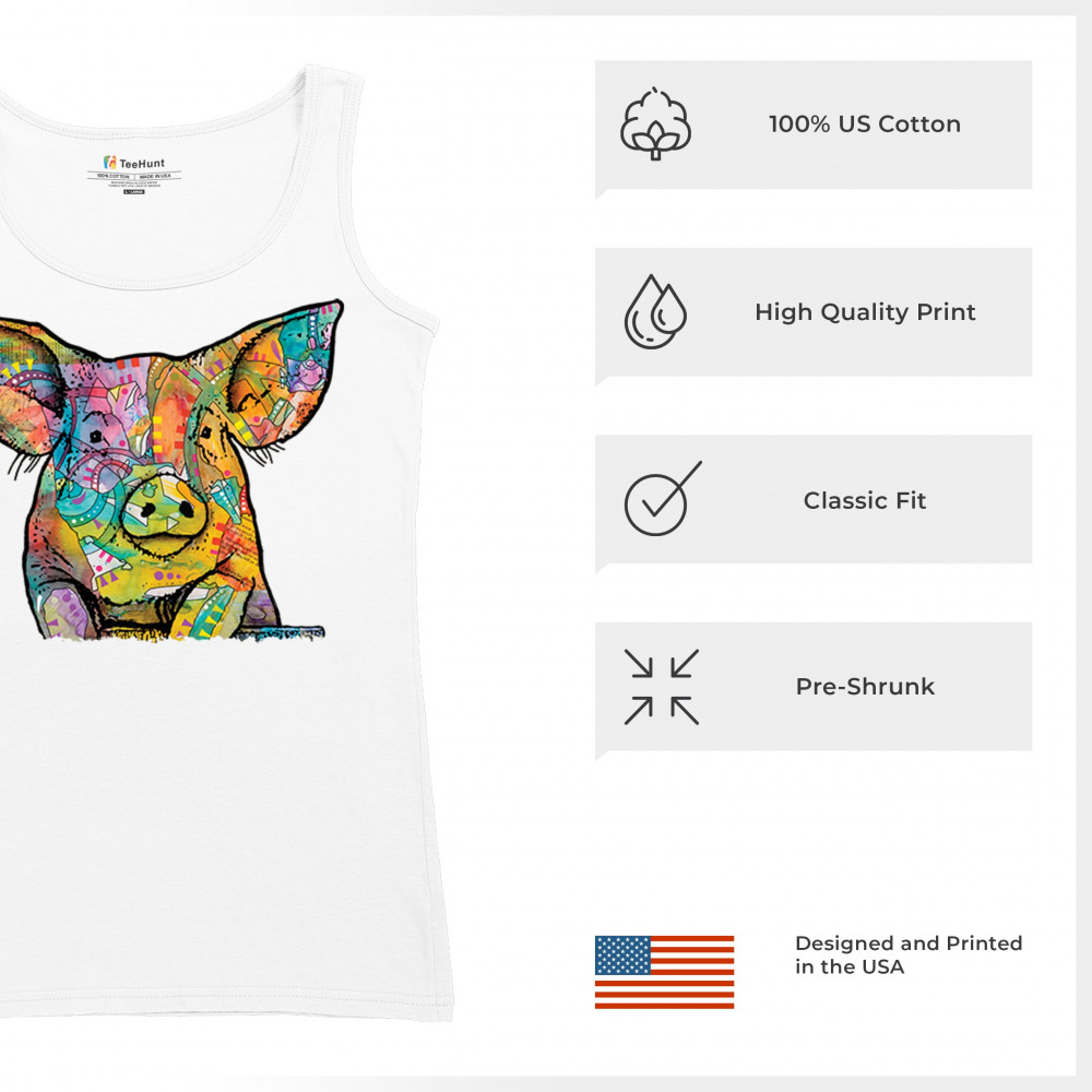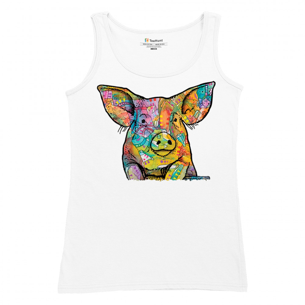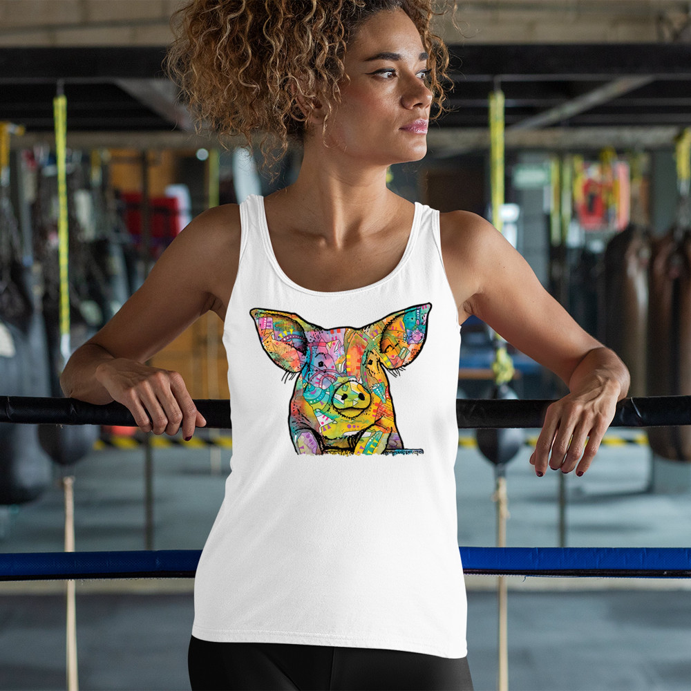 DEAN RUSSO FUNNY CUTE PIG women's tank top farm piglet lover barn white
