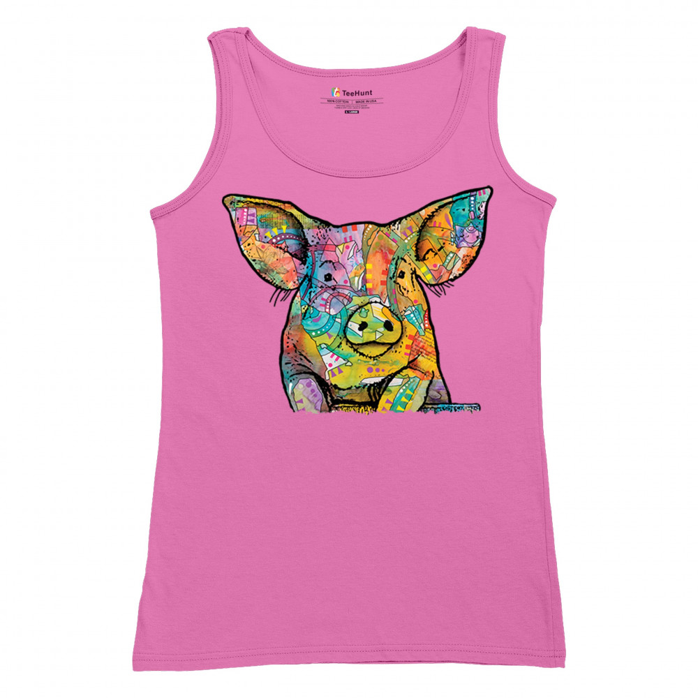 DEAN RUSSO FUNNY CUTE PIG women's tank top farm piglet lover barn pink