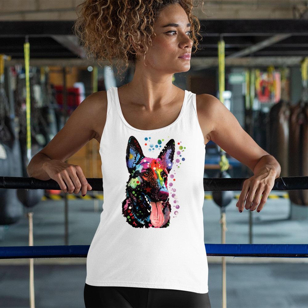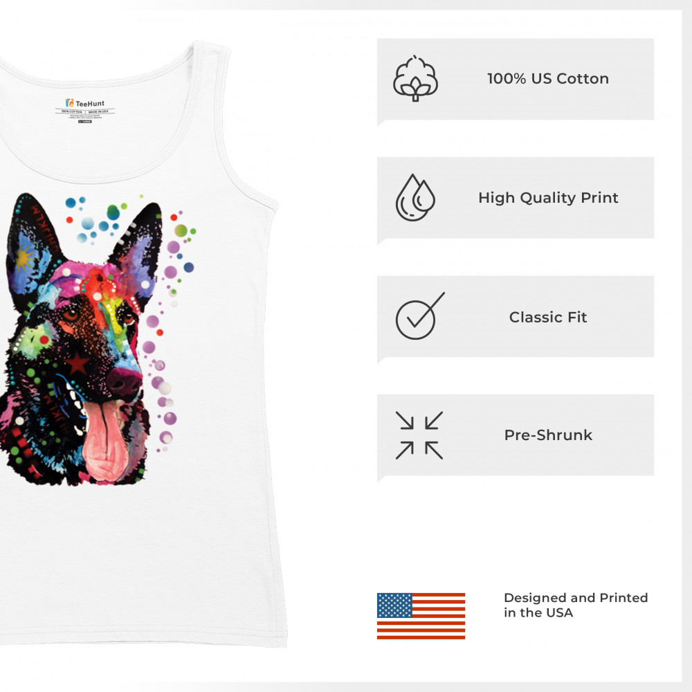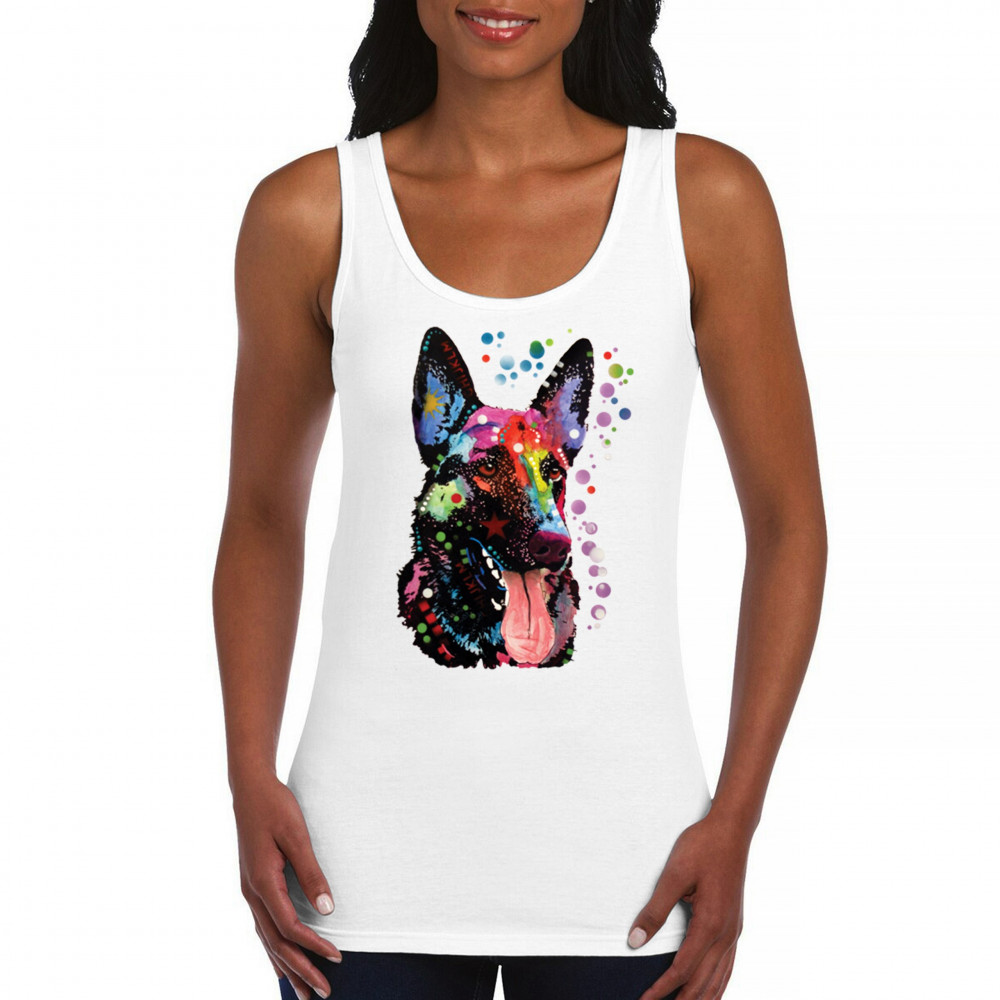 DEAN RUSSO GERMAN SHEPHERD women's tank top colorful dog best friend white