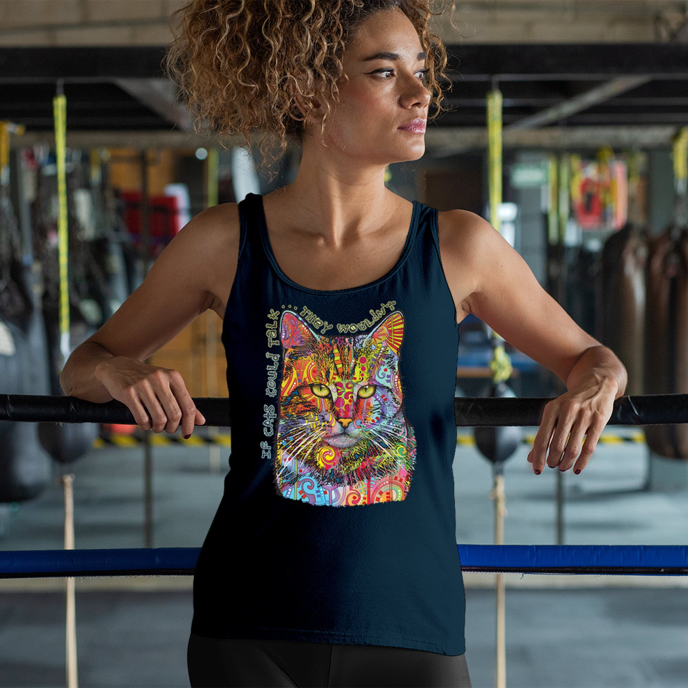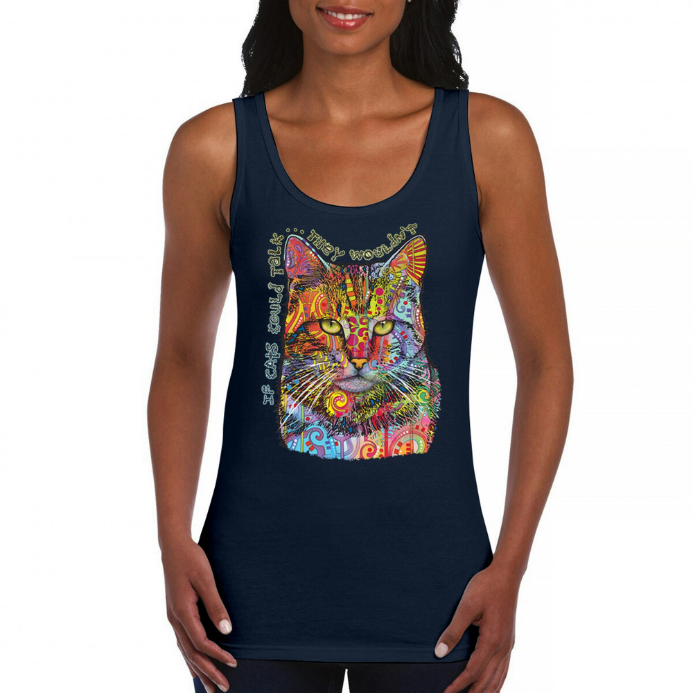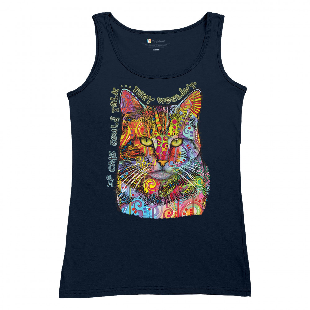 DEAN RUSSO IF CATS COULD TALK THEY WOULDN'T women's tank top cute cat navy blue