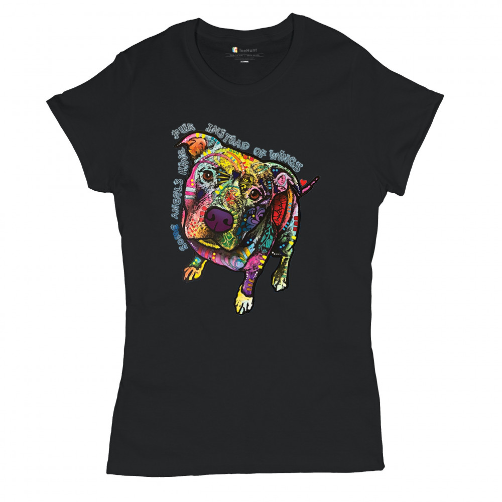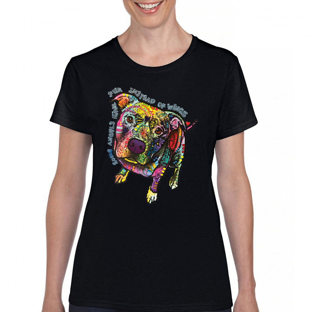 DEAN RUSSO PIT BULL t-shirt some angels have fur instead of wings women's tee black