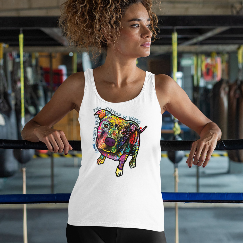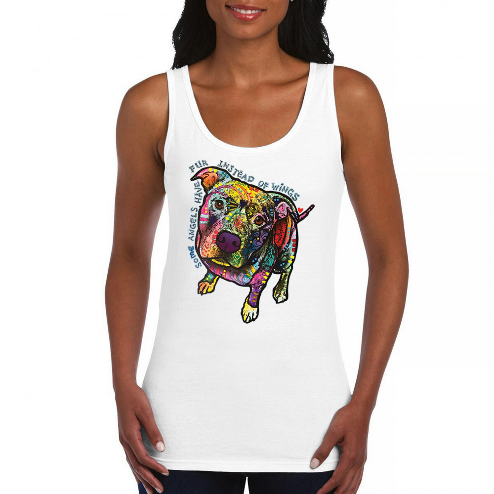 DEAN RUSSO PIT BULL women's tank top some angels have fur instead of wings white