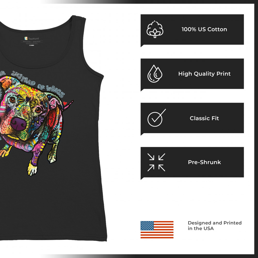 DEAN RUSSO PIT BULL women's tank top some angels have fur instead of wings black