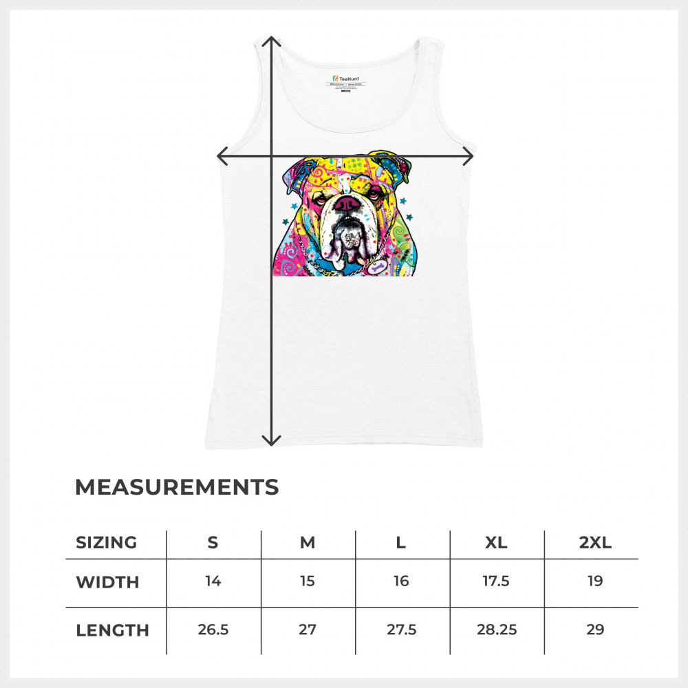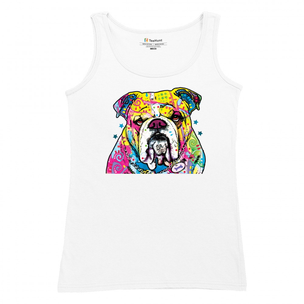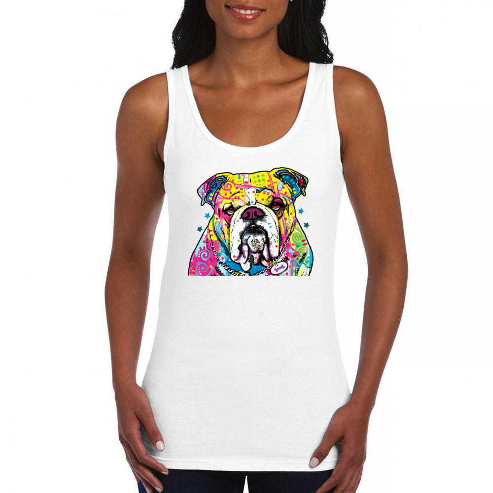 DEAN RUSSO SERIOUS BULLDOG women's tank top colorful dog best friend white