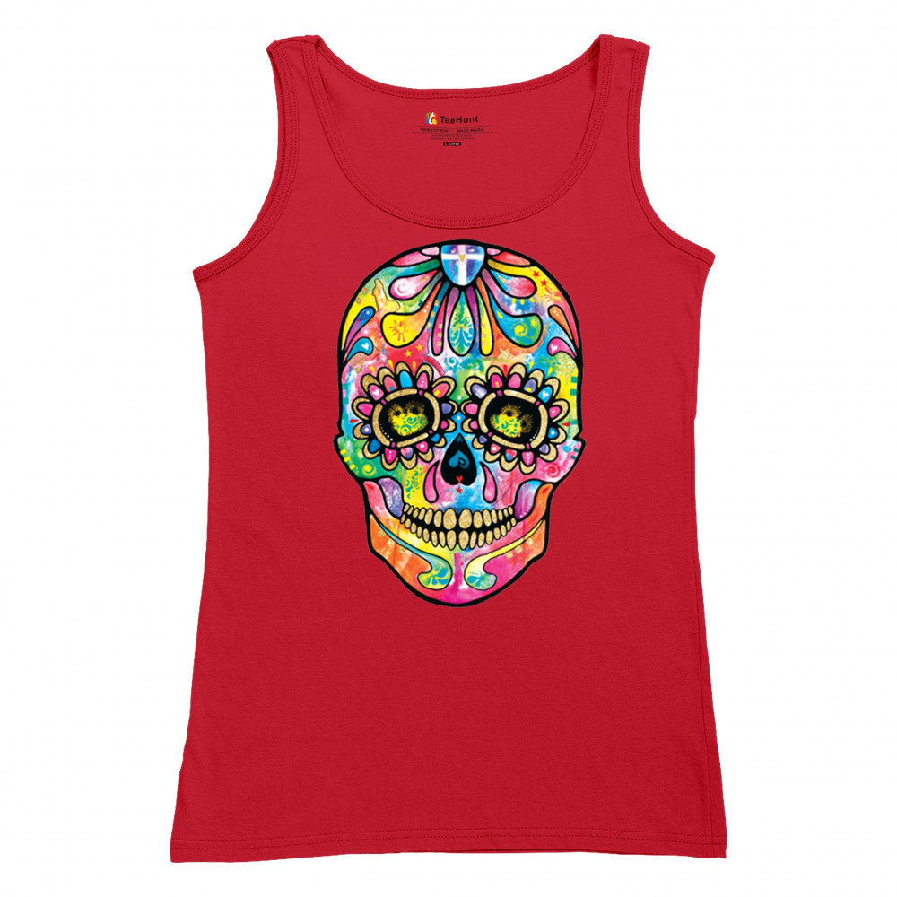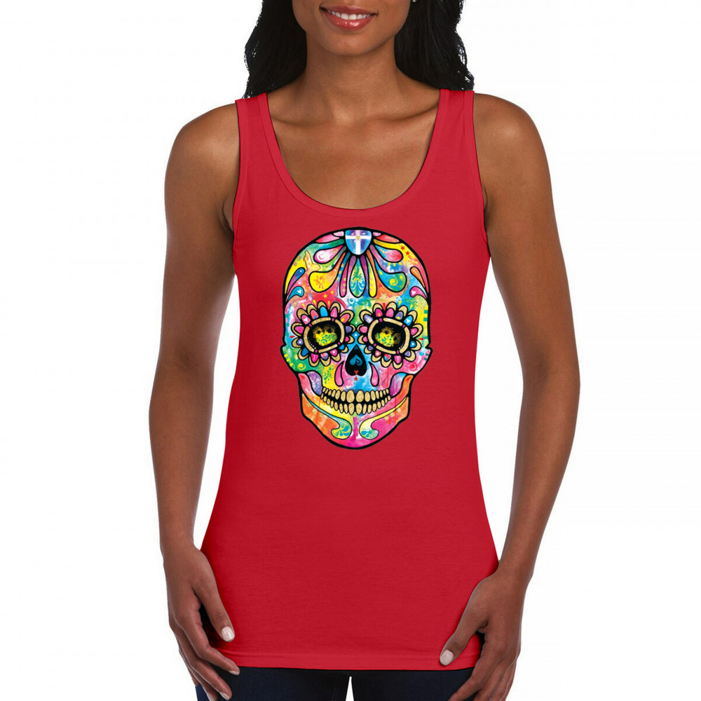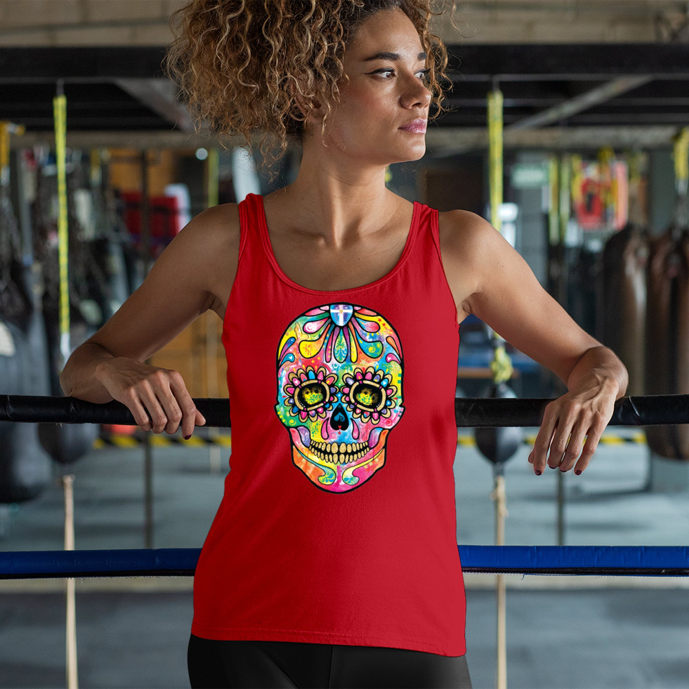 DEAN RUSSO SUGAR SKULL women's tank top day of the dead neon calavera red