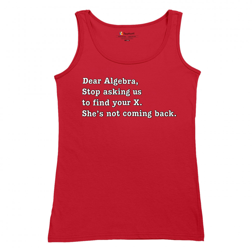 DEAR ALGEBRA STOP ASKING US TO FIND YOUR X women's tank top funny humor red