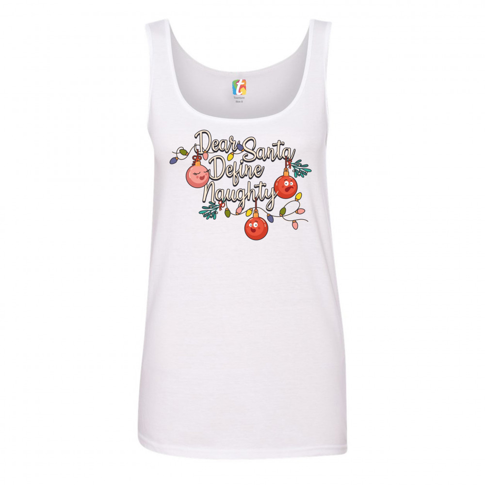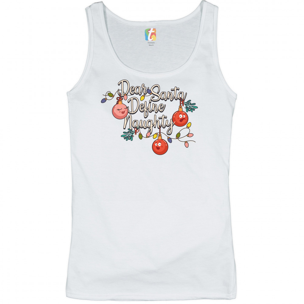 DEAR SANTA DEFINE NAUGHTY women's tank top merry christmas naughty or nice white
