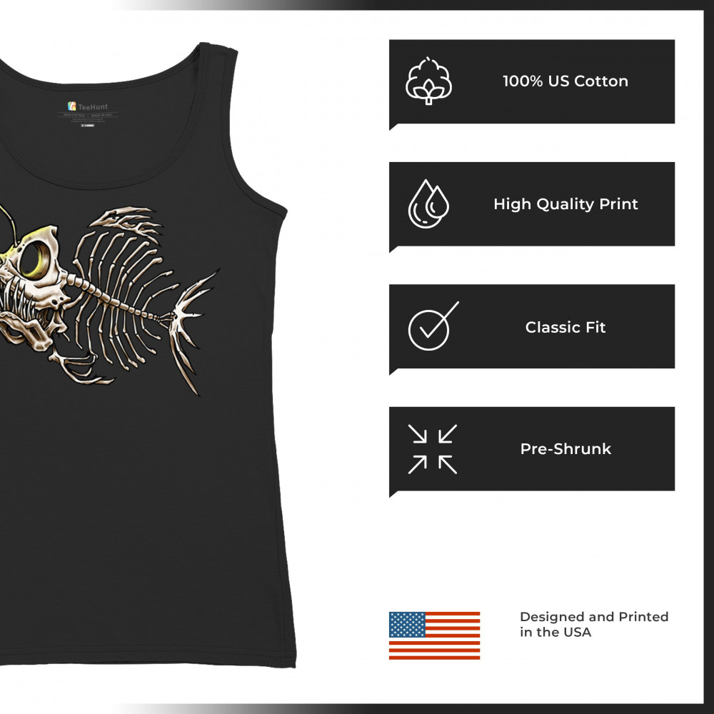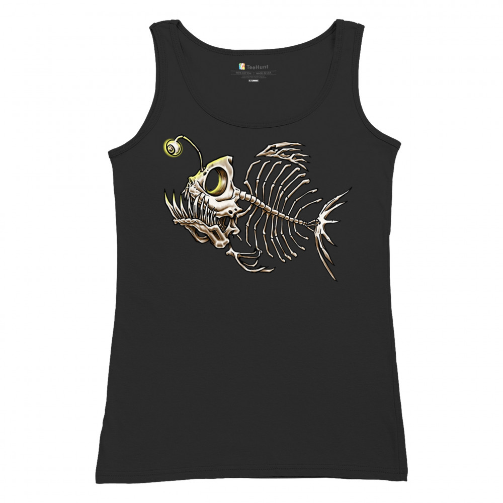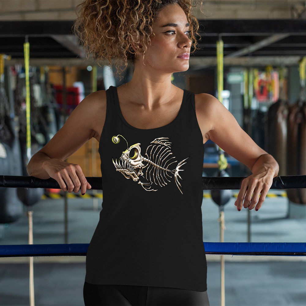 DEEP SEA ANGLER FISH SKELETON women's tank top fishermen fishing lover gift black