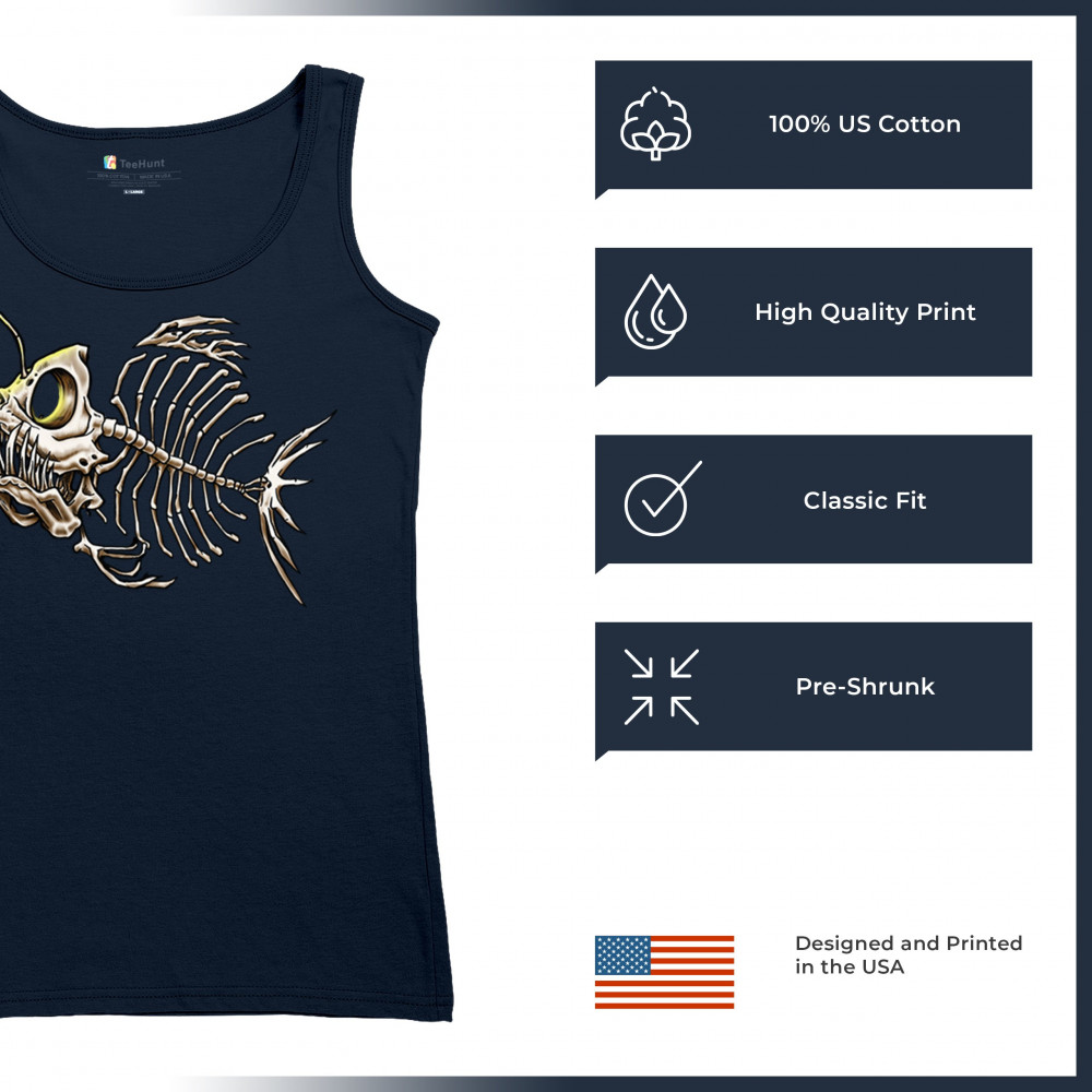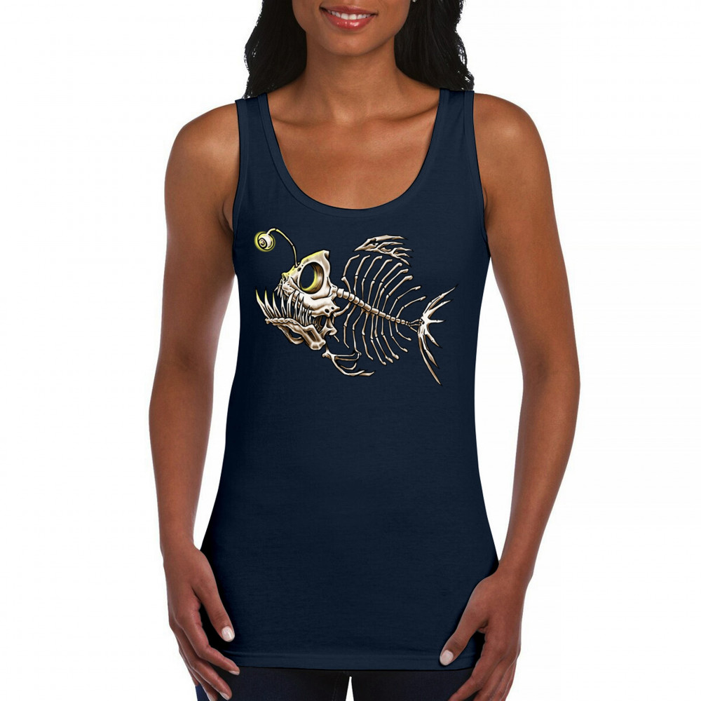 This highly detailed angler fish skeleton design features sharp bones, glowing lure eye, and deep sea terror aesthetic. Perfect for horror fans, marine biology lovers, and ocean adventurers, it combines underwater predator vibes with bone art flair. A great fit for Halloween, dive clubs, and dark sea aesthetics.
