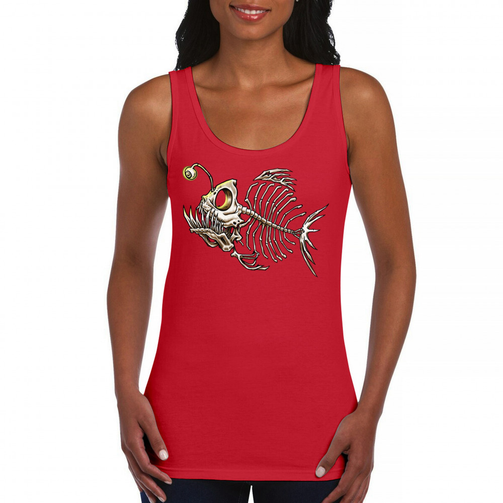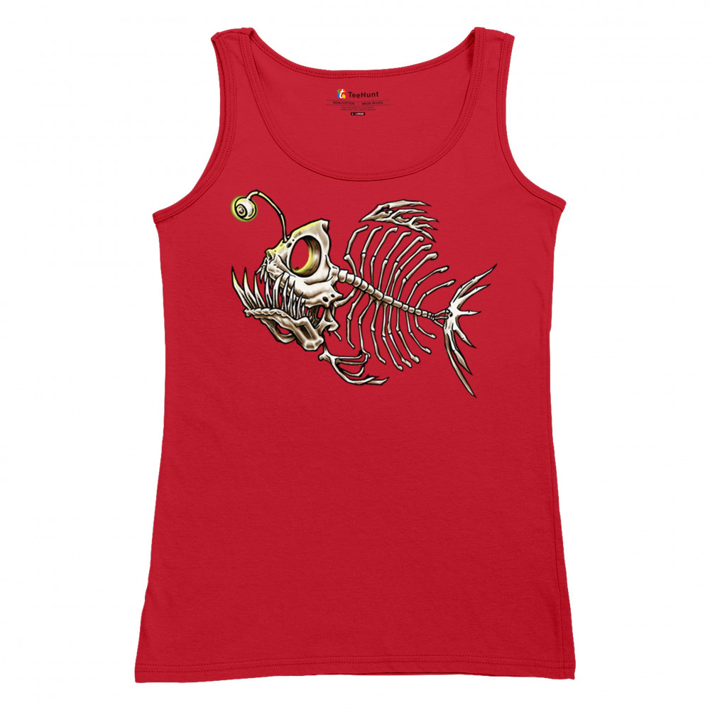 Creepy angler fish skeleton with glowing eye and horror bones. Perfect for sea lovers, divers, Halloween, and marine biology fans.