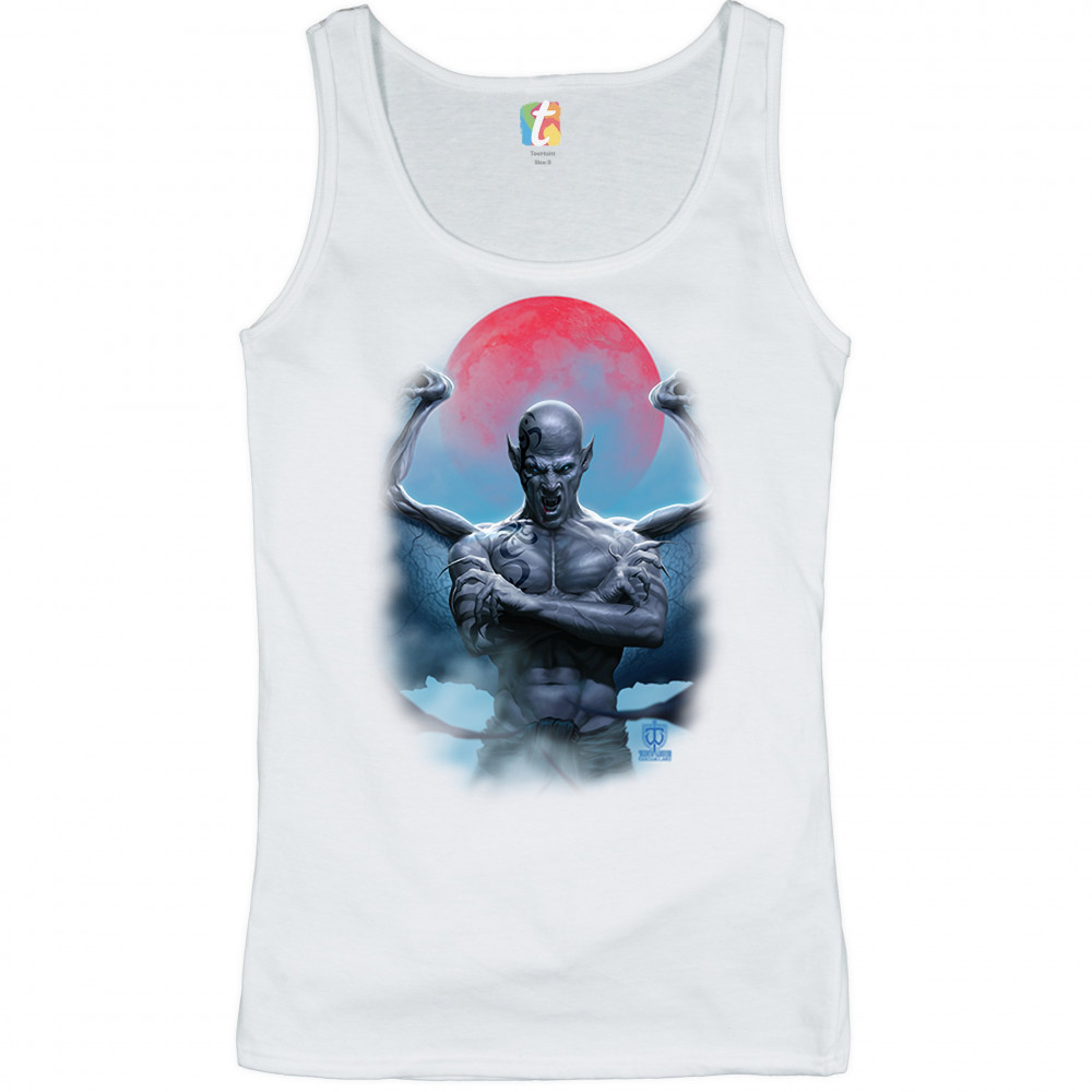 DEMON GARGOYLE women's tank top blood moon scary halloween monster white