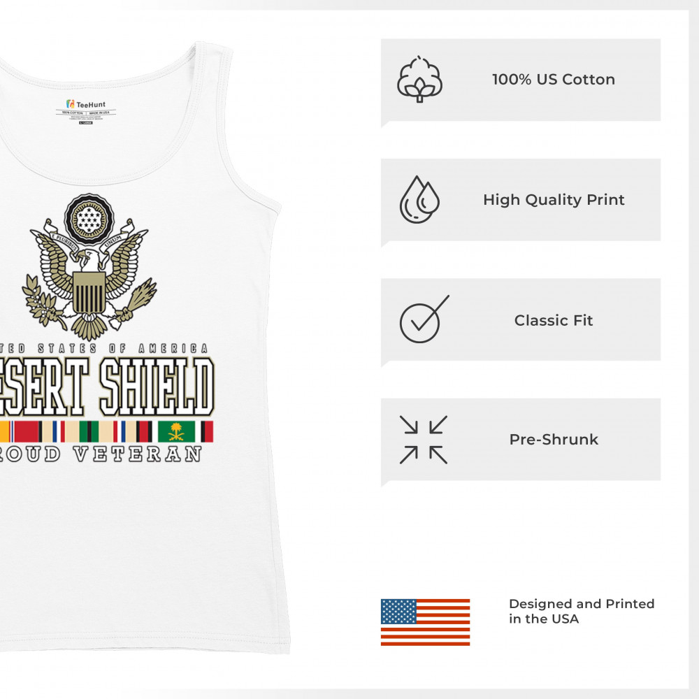 Wear your service with honor with our Desert Shield veteran design, a tribute to the valorous U.S. Army soldiers who stand for freedom, duty, and resilience.