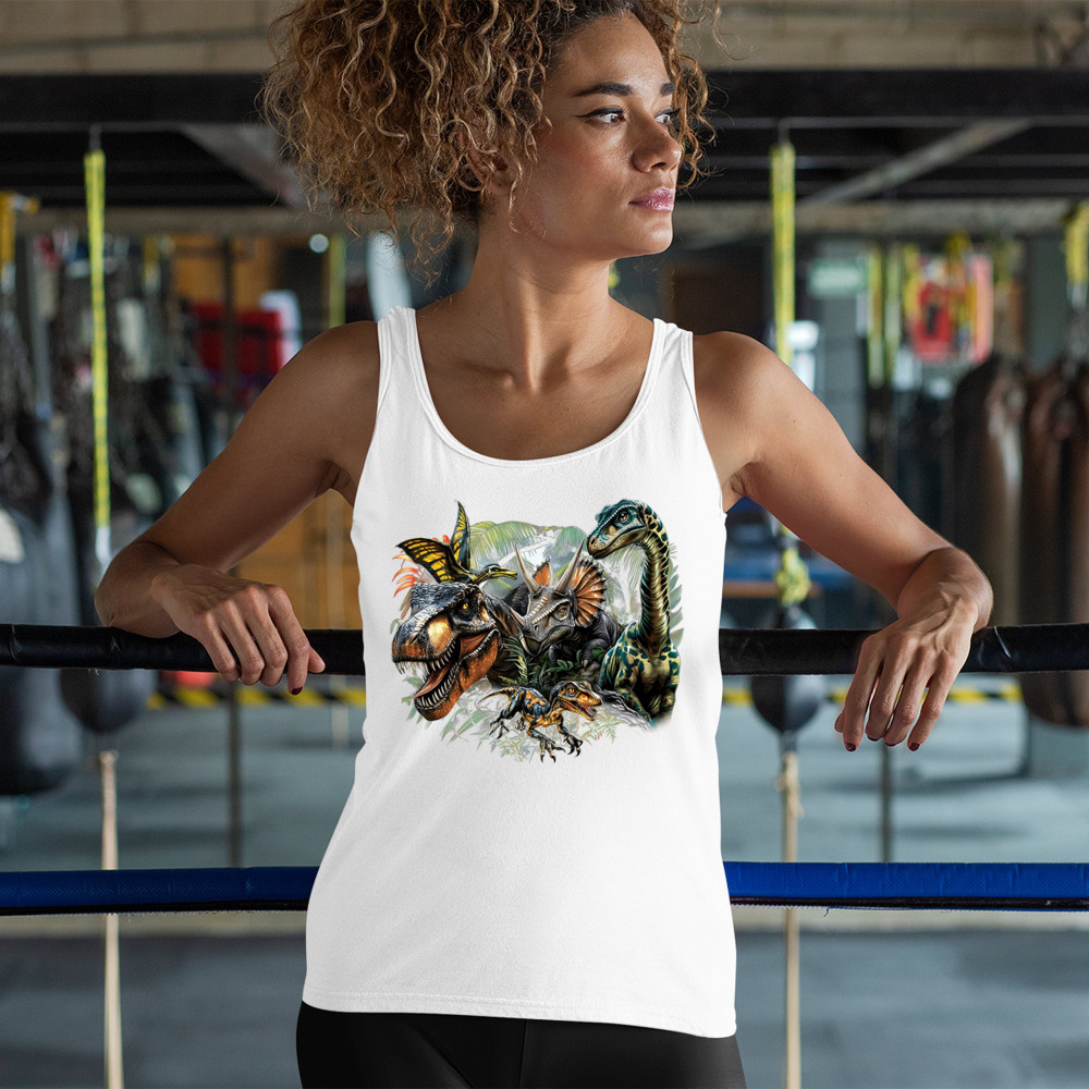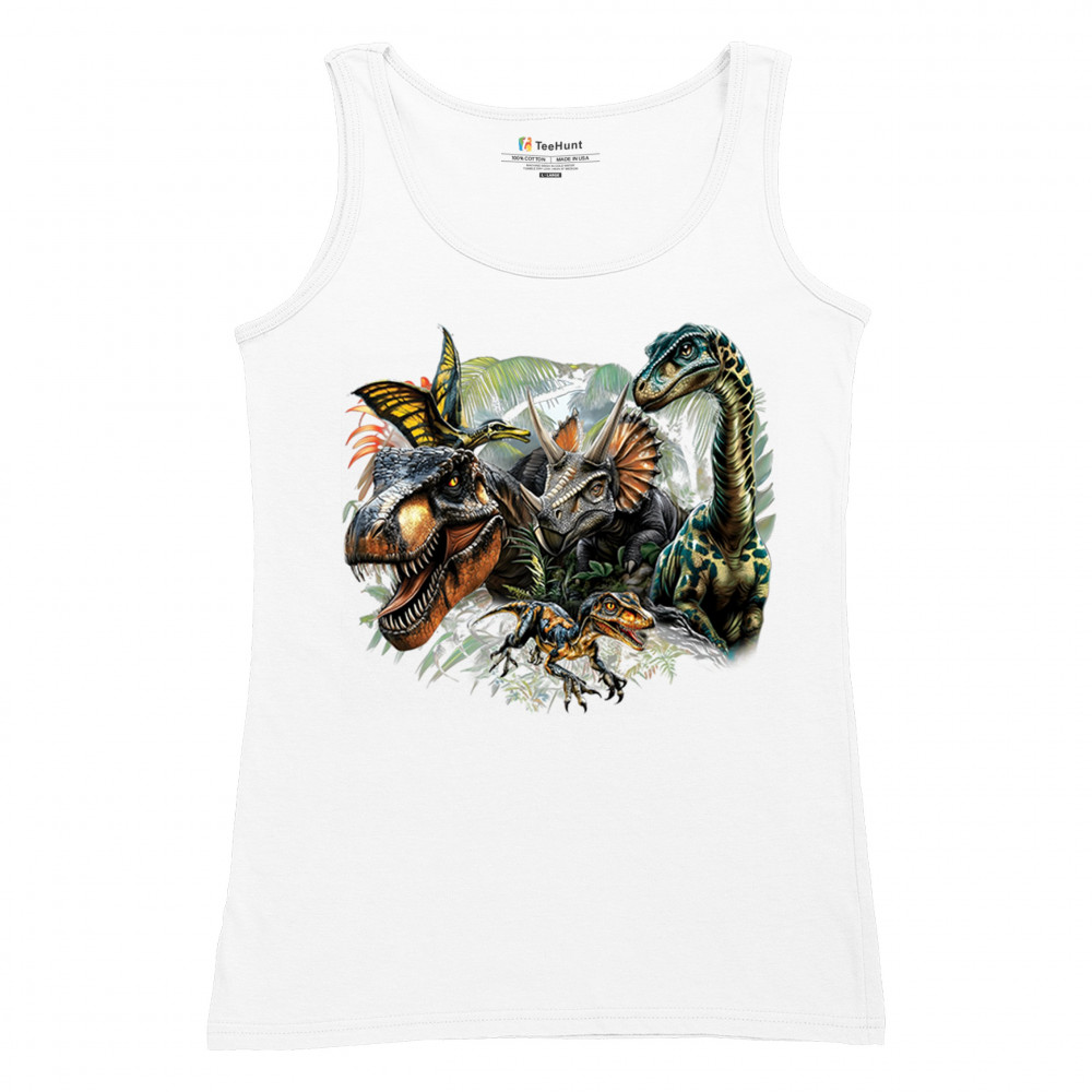 Get prehistoric with this electrifying design featuring a full dino squad in vibrant jungle detail. Includes t rex, triceratops, raptor, brachiosaurus, and pteranodon, all surrounded by tropical foliage. A perfect pick for dinosaur fans, fossil hunters, Jurassic birthday parties, or anyone who loves bold, wild, nature-themed art.
