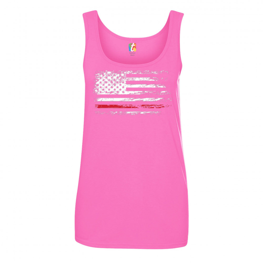 DISTRESSED AMERICAN FLAG women's tank top thind red line firefighter pink