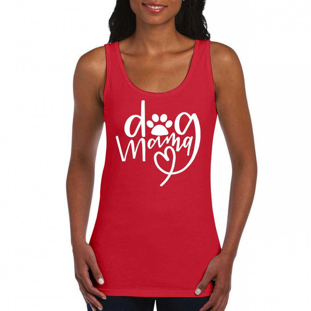 DOG MAMA FUNNY MOTHER'S DAY women's tank top puppy breed adopt a pet paw red