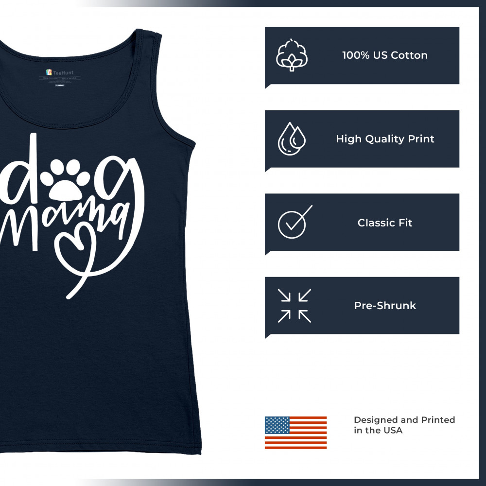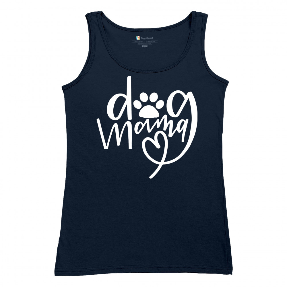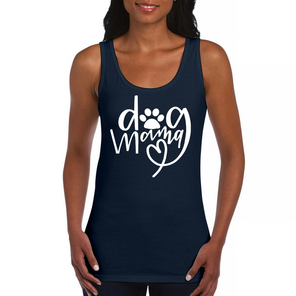 DOG MAMA FUNNY MOTHER'S DAY women's tank top puppy breed adopt a pet paw navy blue