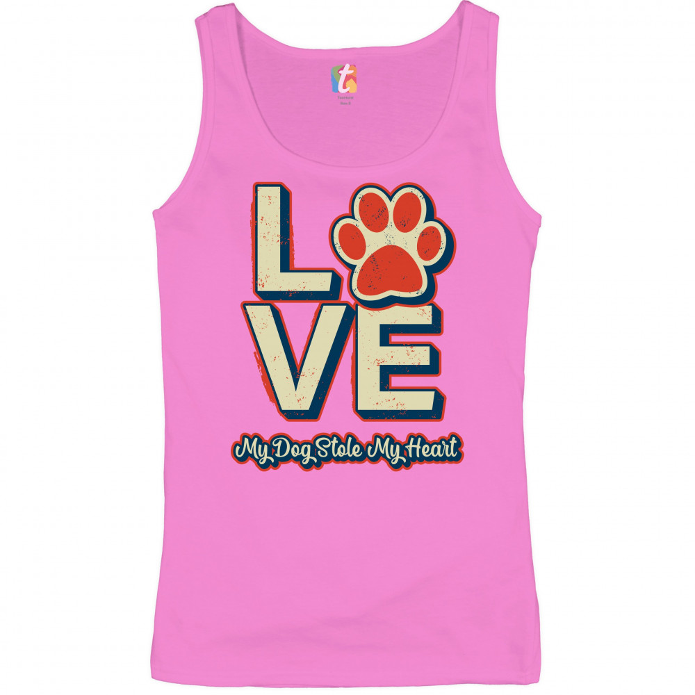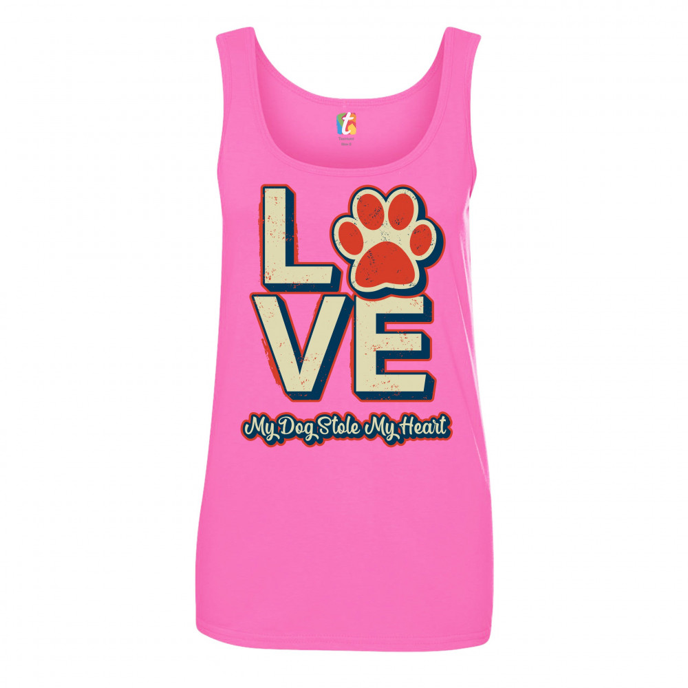 DOG PAW LOVE women's tank top my dog stole my heart pet owner animal lover pink