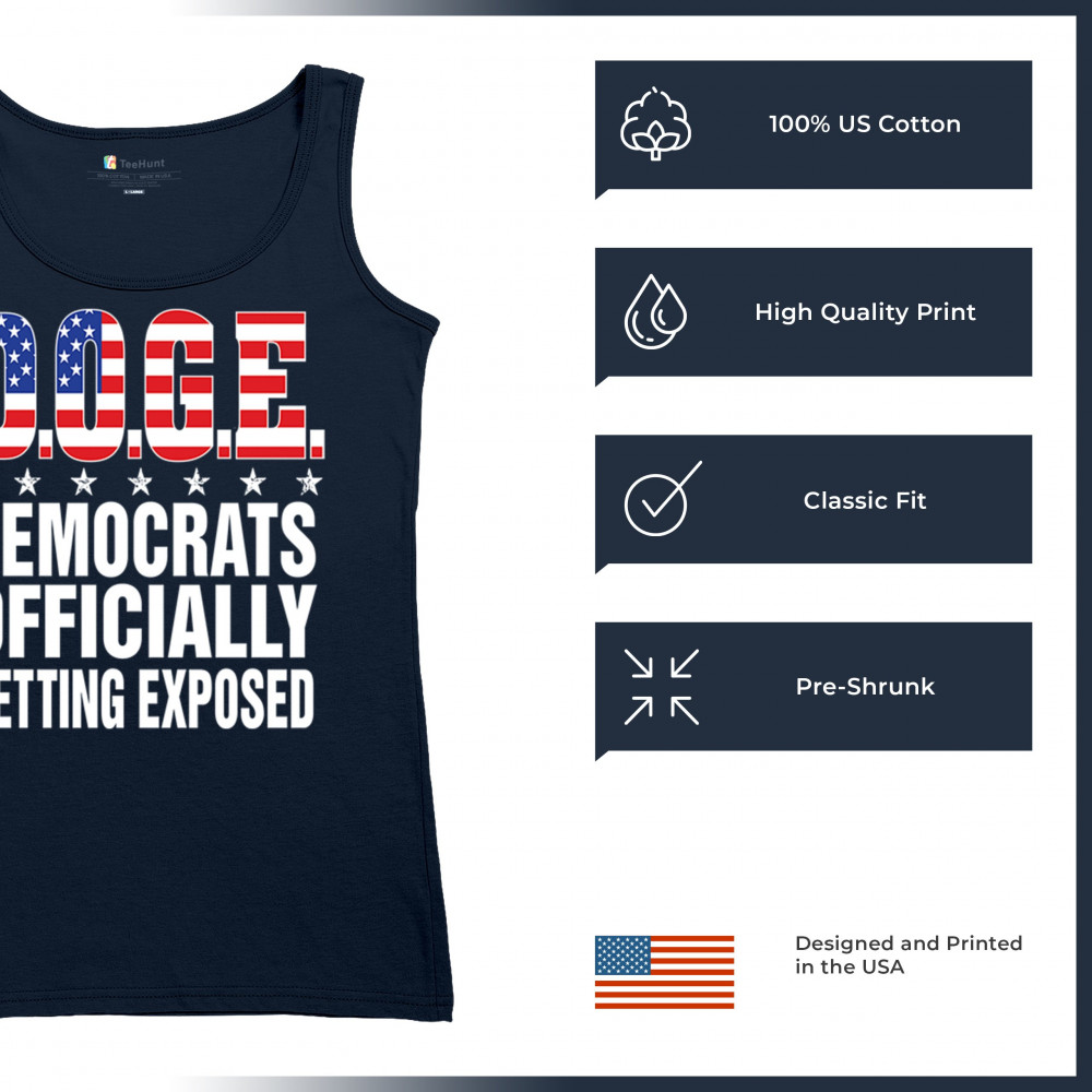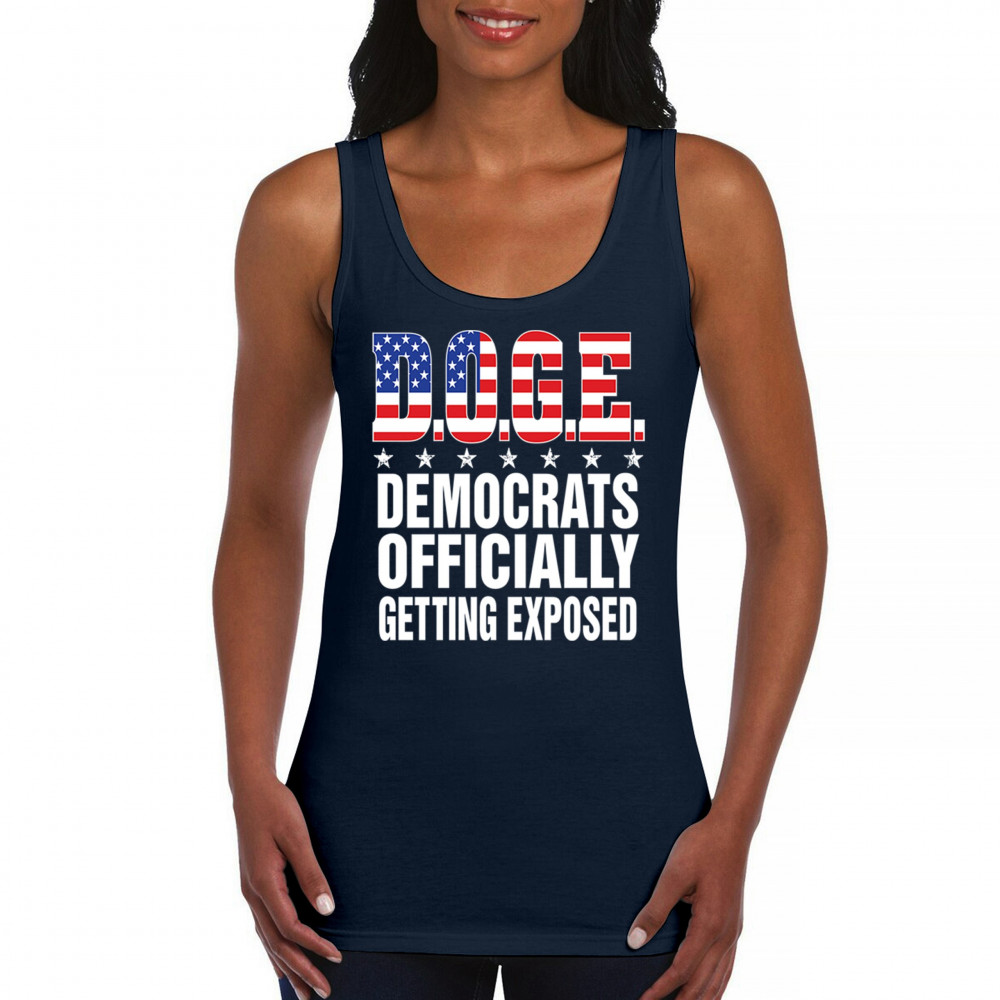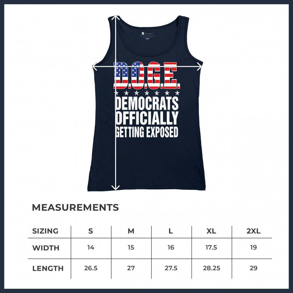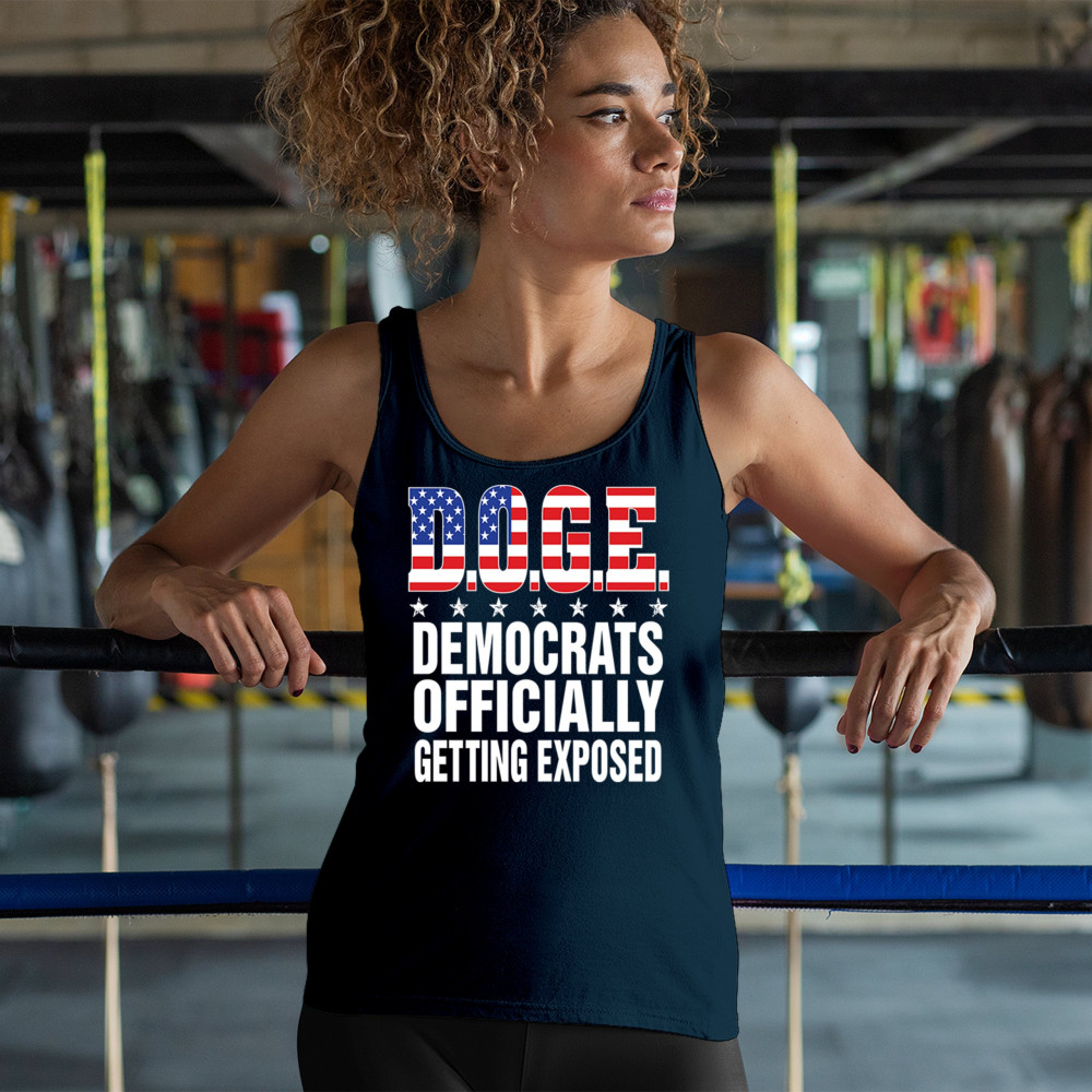 The D.O.G.E. Democrats Officially Getting Exposed design features bold text packed with patriotic flair and political edge. Stars-and-stripes fill the acronym while the clean layout delivers a direct anti-liberal message. Ideal for conservatives, libertarians, and free-speech defenders at rallies, campaign events, or daily wear.