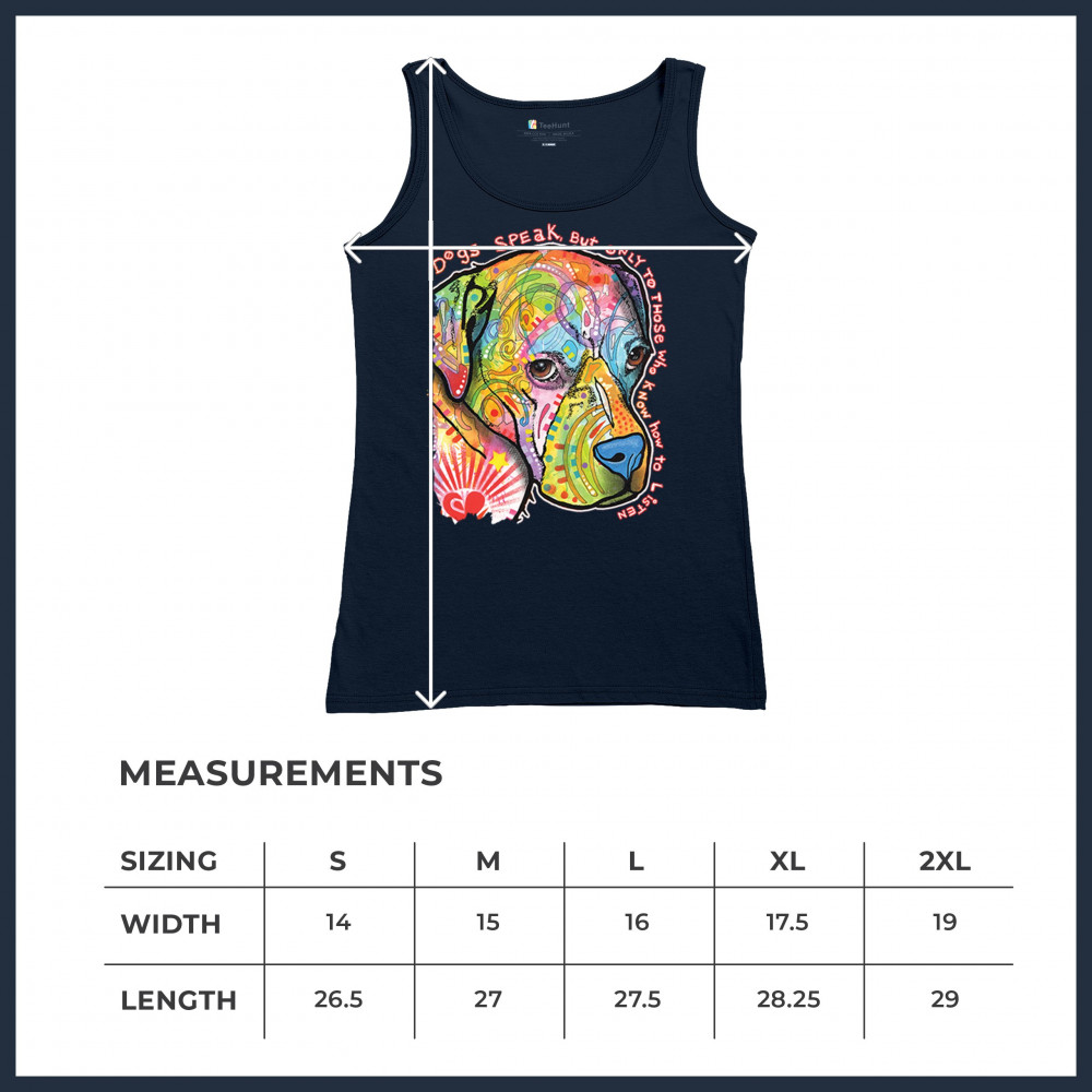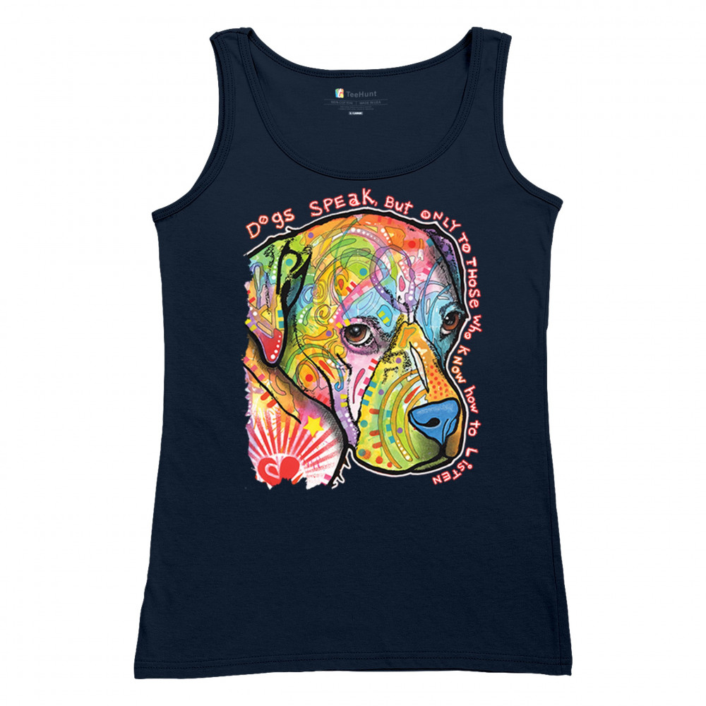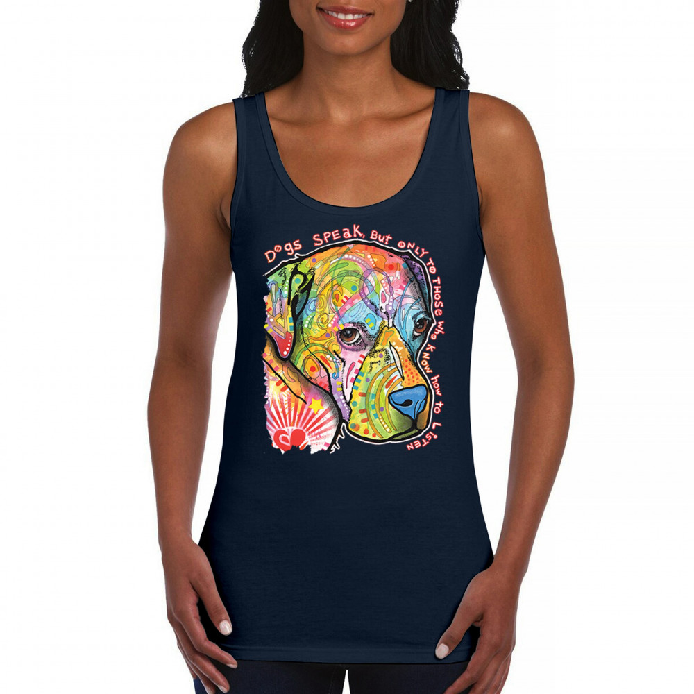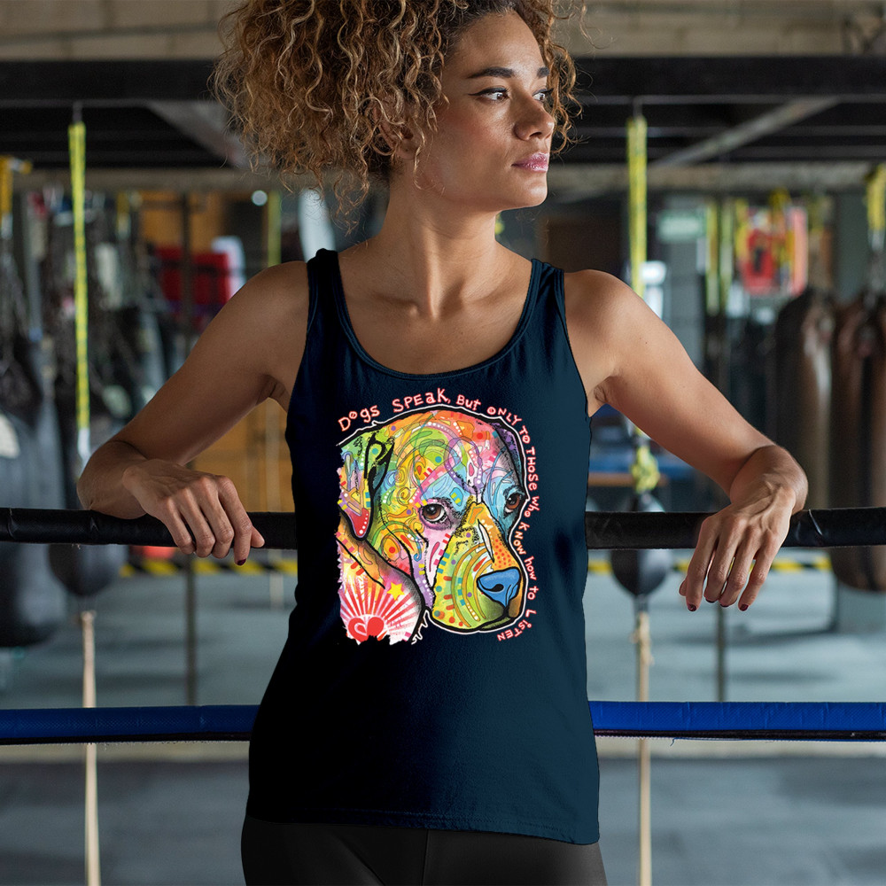 DOGS SPEAK TO THOSE WHO LISTEN women's tank top dean russo neon pet puppy navy blue