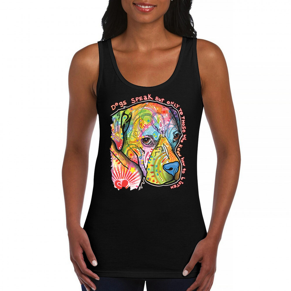 DOGS SPEAK TO THOSE WHO LISTEN women's tank top dean russo neon pet puppy black