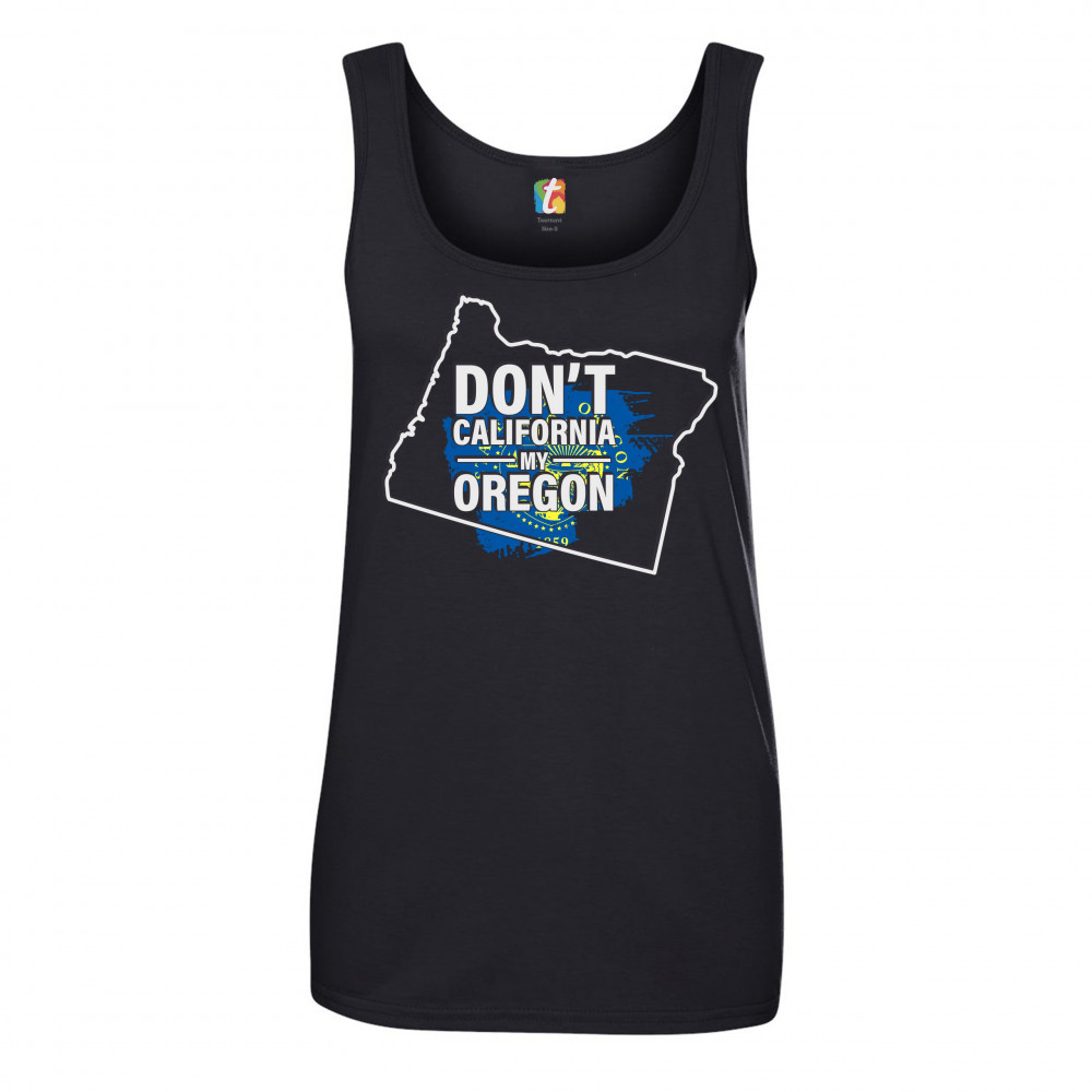 A political print featuring a silhouette of the state of Oregon and the Seal of the State of Oregon inside of it. The print says: "Don't California my Oregon". A great choice for anyone who is concerned for a huge number of Californians moving to their be
