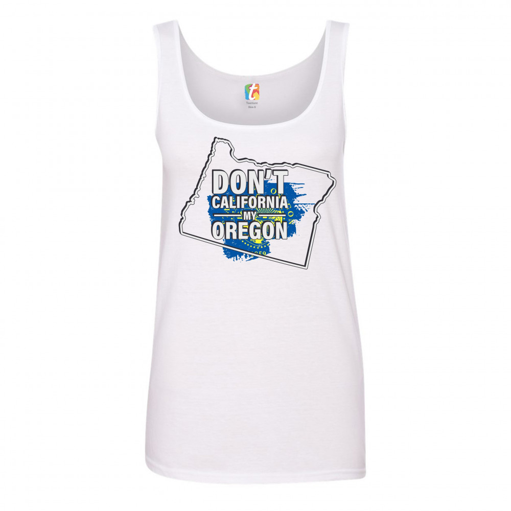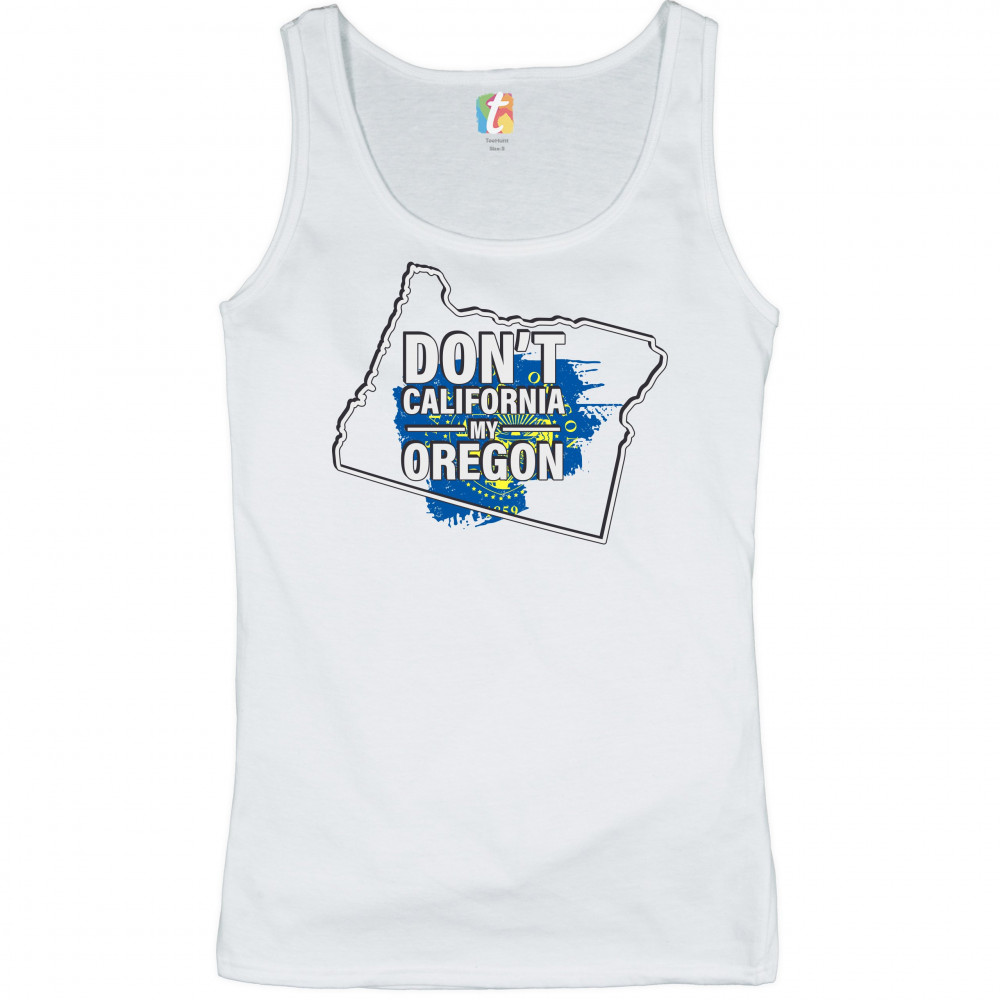 A political print featuring a silhouette of the state of Oregon and the Seal of the State of Oregon inside of it. The print says: "Don't California my Oregon". A great choice for anyone who is concerned for a huge number of Californians moving to their be