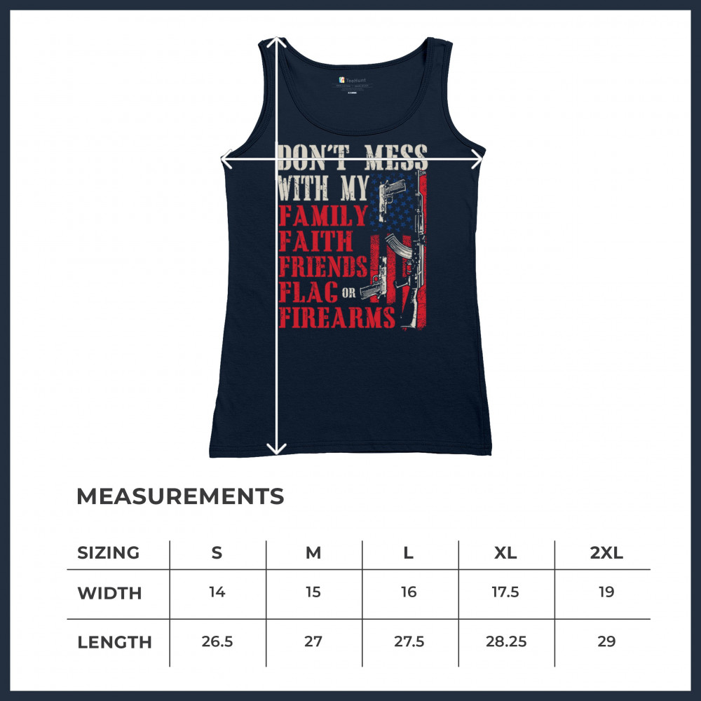 Don’t mess with a patriot’s core. This powerful design shouts loyalty to family, faith, friends, flag, and firearms. Featuring bold lettering on an American flag backdrop, it’s made for defenders of freedom, gun rights, and American values. Ideal for veterans, 2A supporters, and anyone who won’t back down from defending what they love.