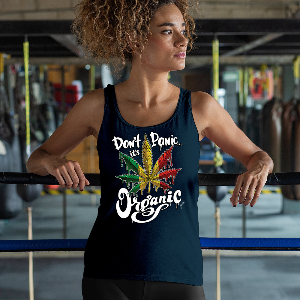 Stay cool and collected with our "Don't Panic...It's Organic" tee. Perfect for those who love life au naturel. It's more than a shirt—it's a lifestyle!