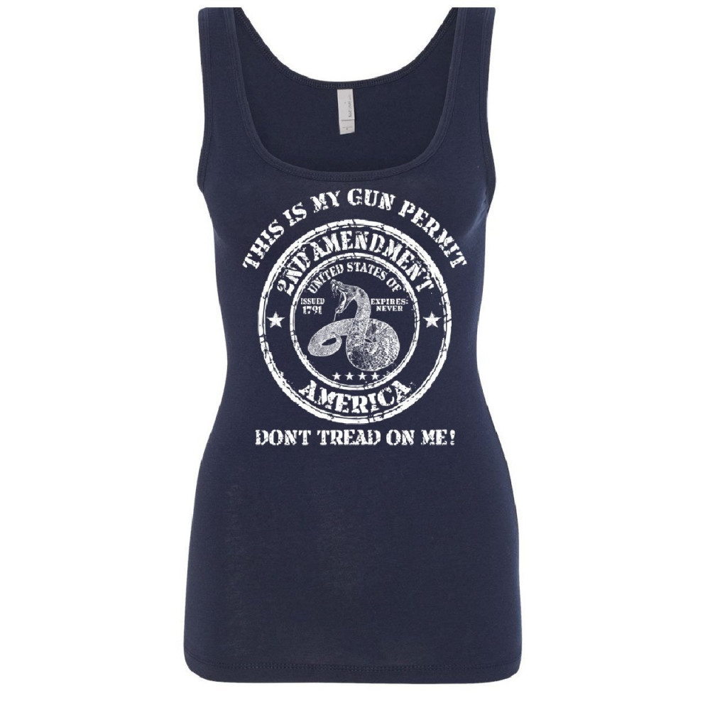 DON'T TREAD ON ME MY GUN PERMIT don't tread on me women's tank top 2nd amendment gun permit gun rights 2a top navy blue