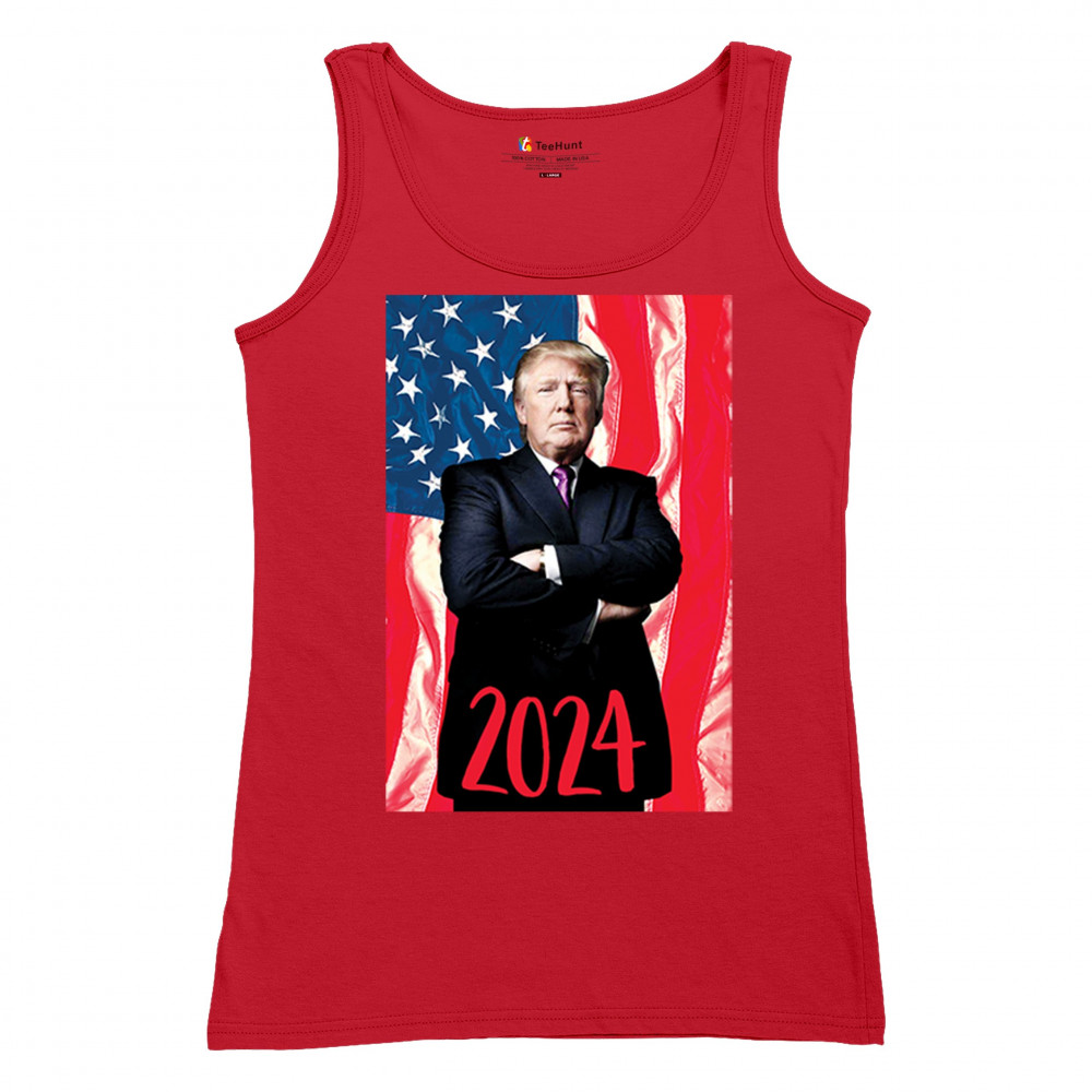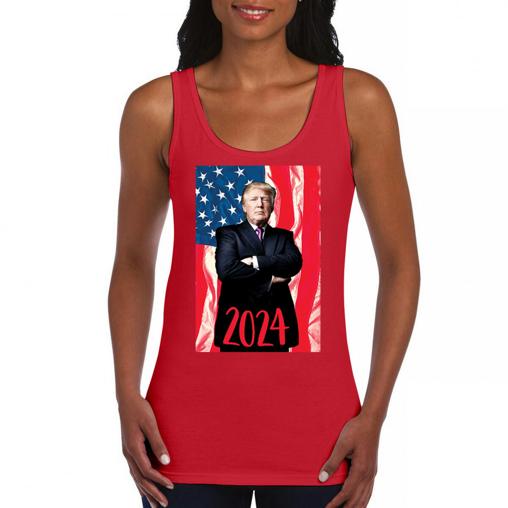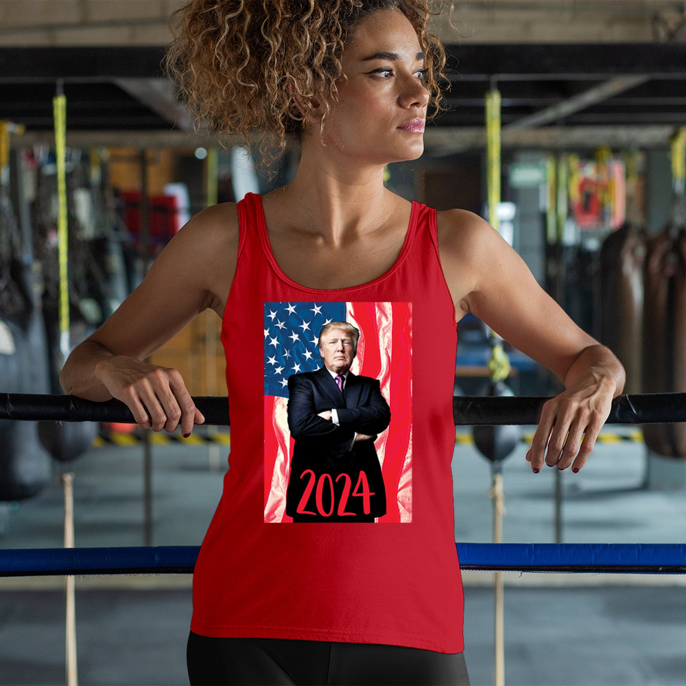 Showcase your unwavering support and patriotic pride with our exclusive design, featuring Donald Trump poised before the American flag with "2024" inscribed below. This powerful imagery is a testament to the conservative journey towards victory, echoing the calls of "America First" and unity under a common cause. It's a tribute to those who believe in standing firm, fueled by trust in God and a commitment to the principles that define us. A must-have for every supporter ready to be part of the next chapter in American history.