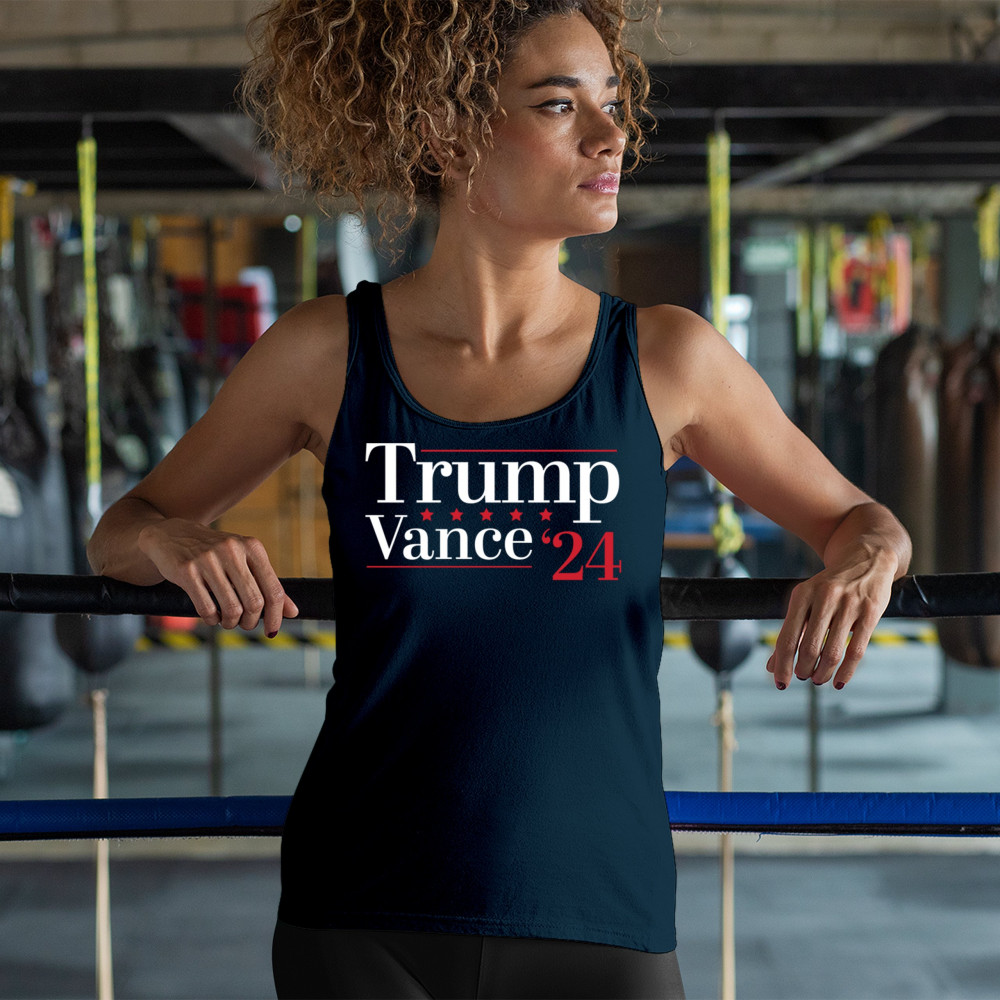 Support Trump-Vance 2024 with this bold design featuring the "Make America Great Again" slogan and the American flag. Perfect for rallies and conservative events.
