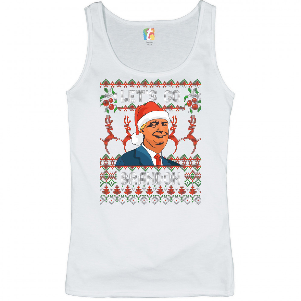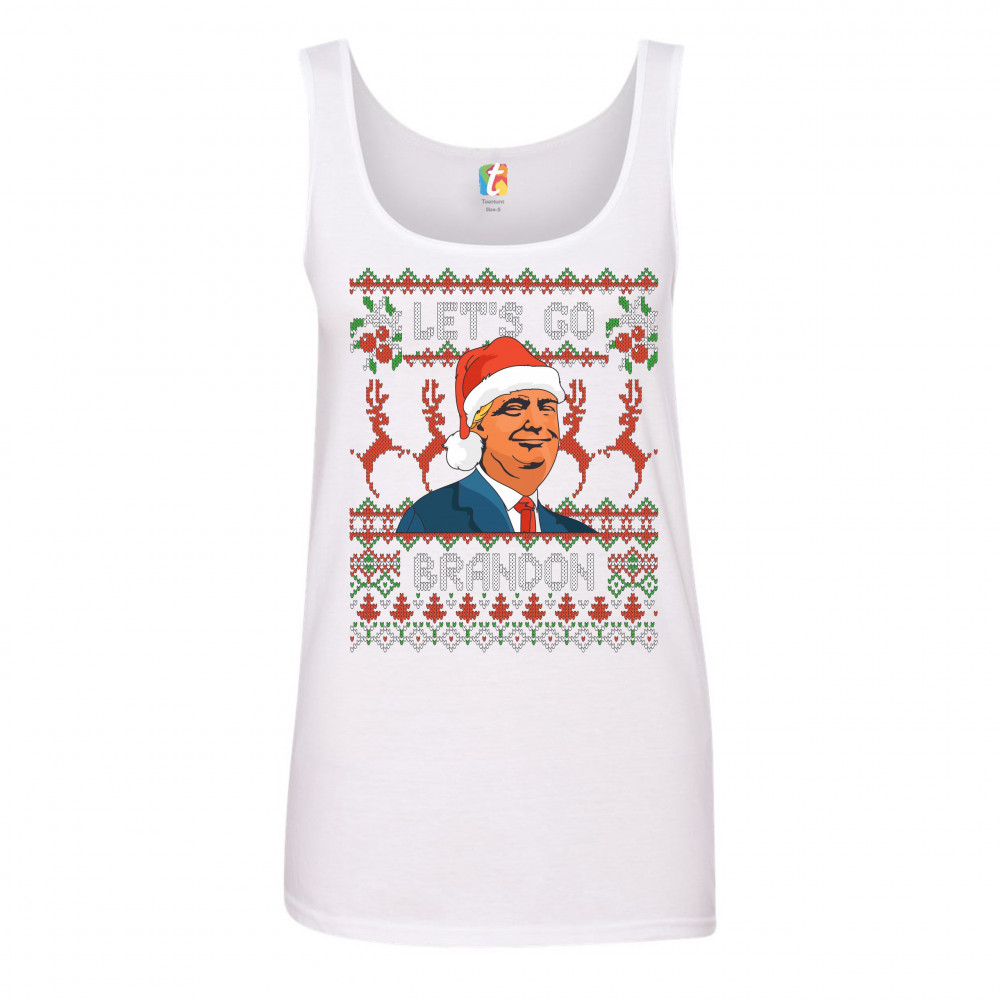 DONALD TRUMP LET'S GO BRANDON women's tank top christmas xmas ugly sweater white