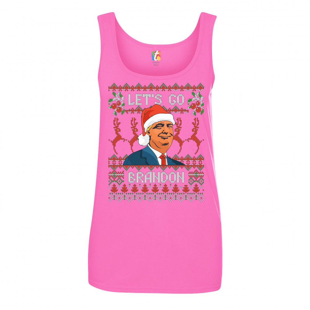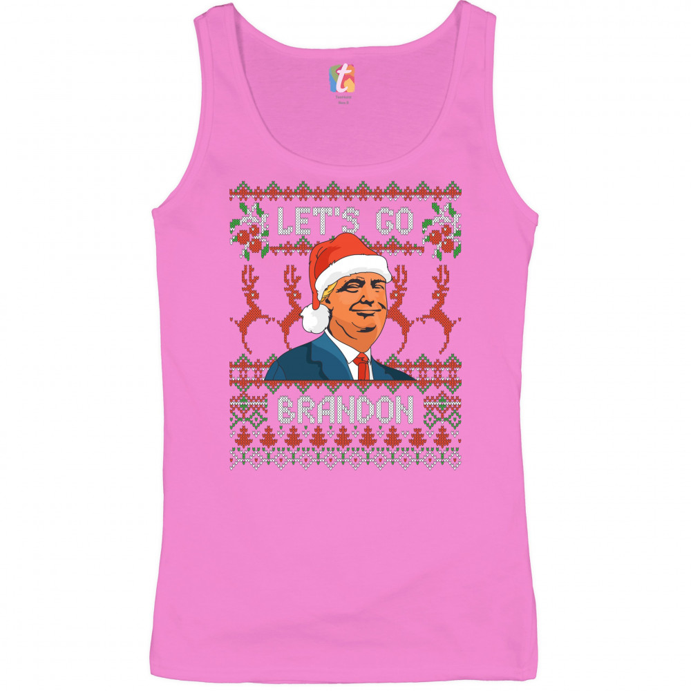 DONALD TRUMP LET'S GO BRANDON women's tank top christmas xmas ugly sweater pink