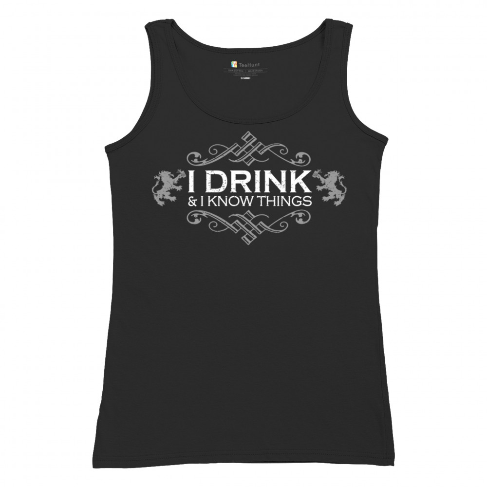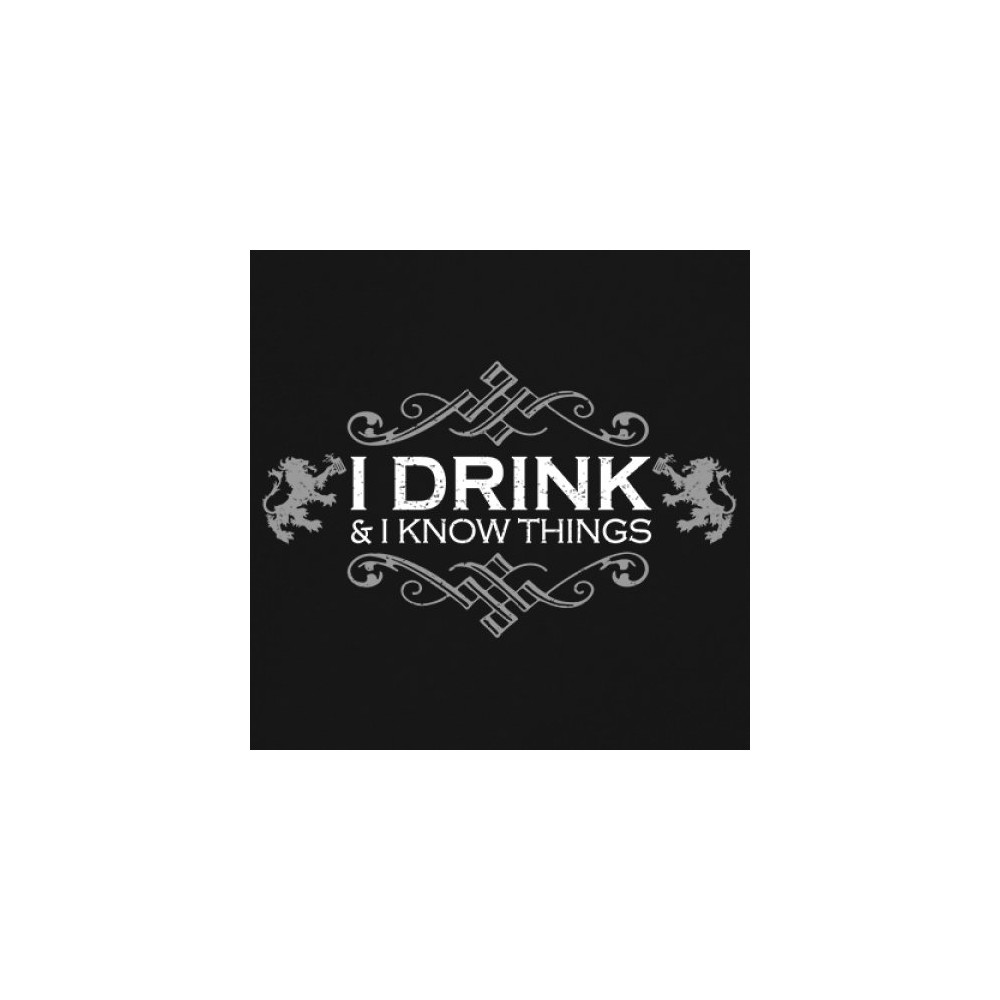 Funny fantasy design with “I Drink and I Know Things†quote, perfect for bar nights, humor lovers, trivia kings, and dry sarcasm fans.