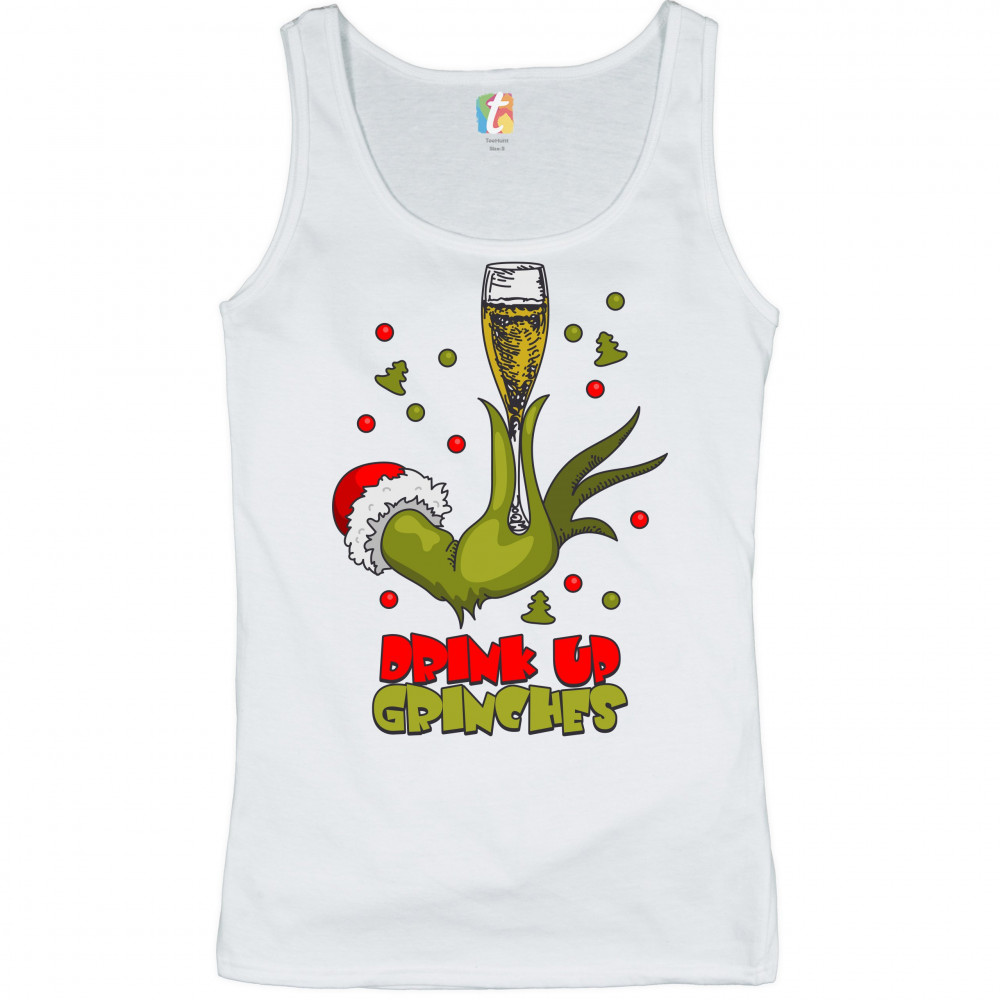 DRINK UP GRINCHES women's tank top funny christmas drinking white